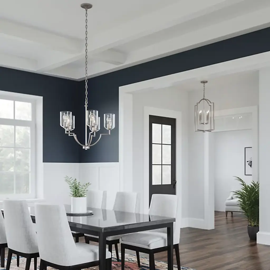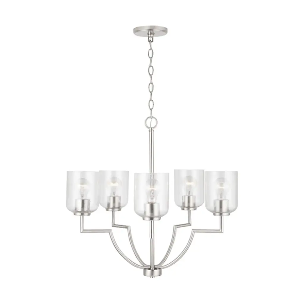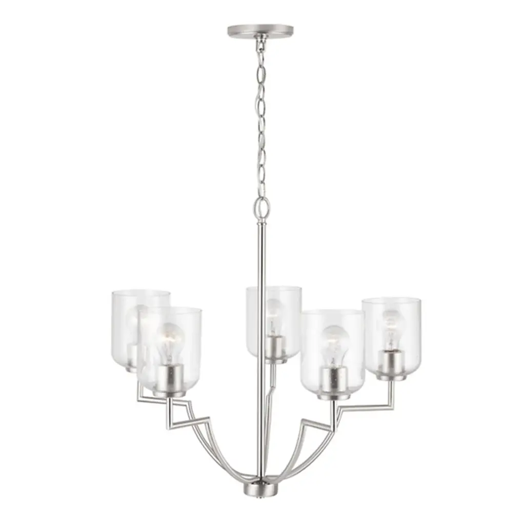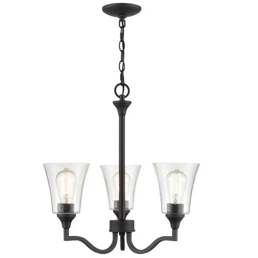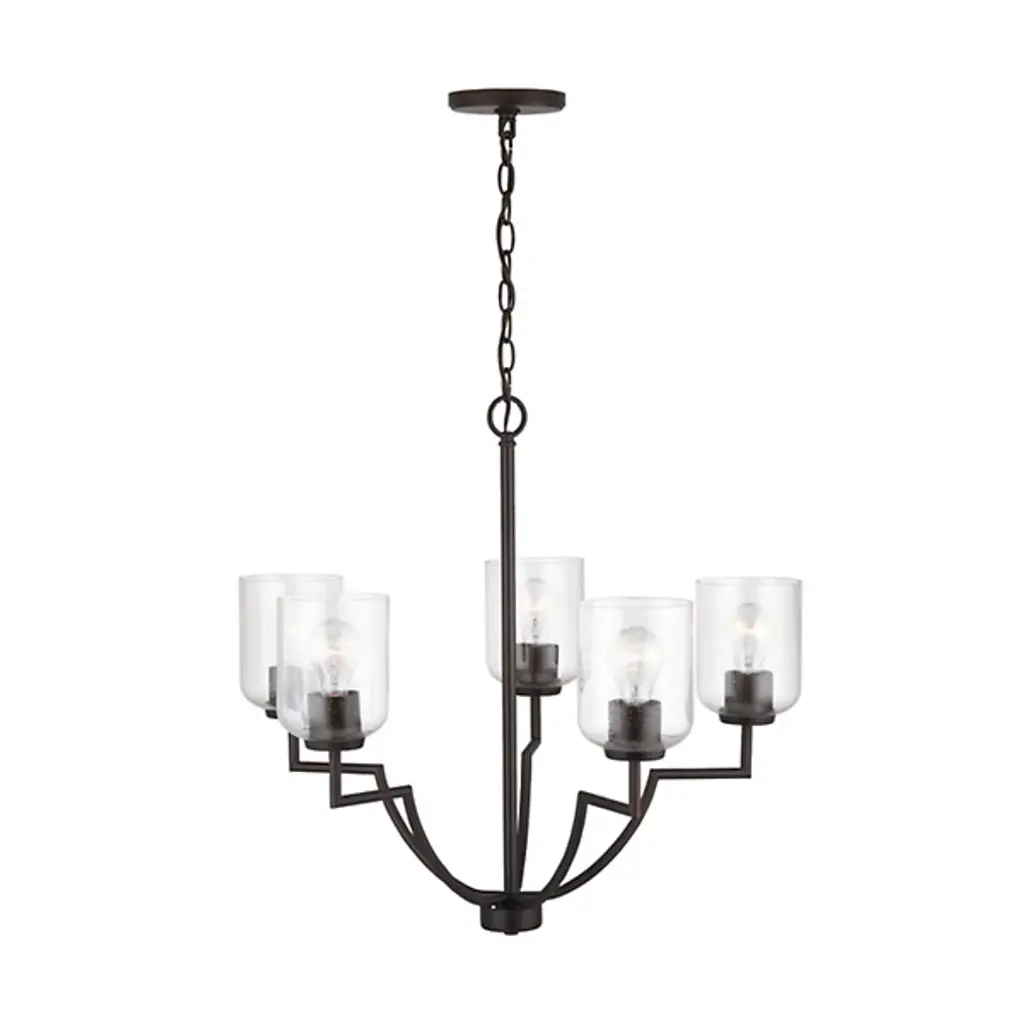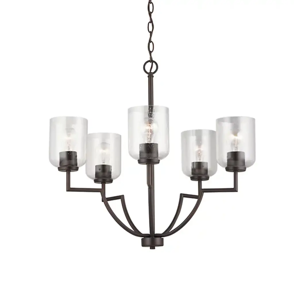 The Carter Chandelier from Capital Lighting accentuates the clean angles of your modern home with a neat, sculptural design. It’s a piece inspired by modern design’s iconic patterns. The piece feels familiar as it produces a series of arms underlined by their generous curve and sharp angles. Together, the arms create an upsurging, graphic silhouette that catches the eye day and night. Clear glass shades topping the arm add a bit of vintage charm to the piece. The seeded texture of the shade softens the image of the bright bulbs inside for a comfortable light. The group of bulbs creates a warm, inspiring source of illumination.