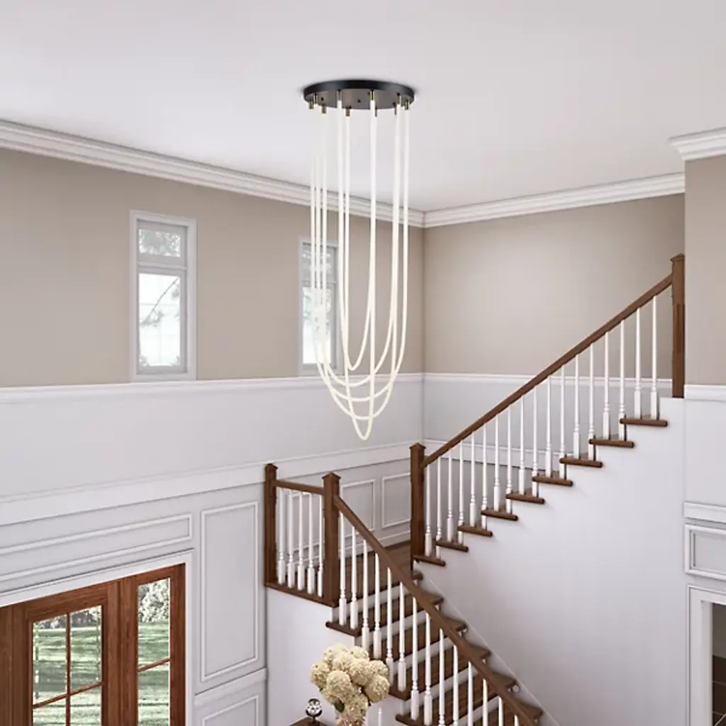 The Cascata LED Foyer Chandelier by Artcraft invites you into the world of modern elegance. This foyer chandelier perfectly combines the durability of high-quality metal and the soft touch of silicone in its design, perfectly demonstrating the beauty of contrasts. Ideal for a living room setting, this uniquely irregular shaped lighting fixture captivates the eye while also providing functional, energy-efficient illumination. As part of the Cascata collection, this piece adheres to the sleek and sophisticated style that has become synonymous with Artcraft.