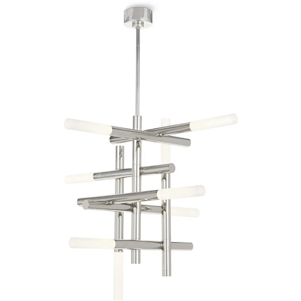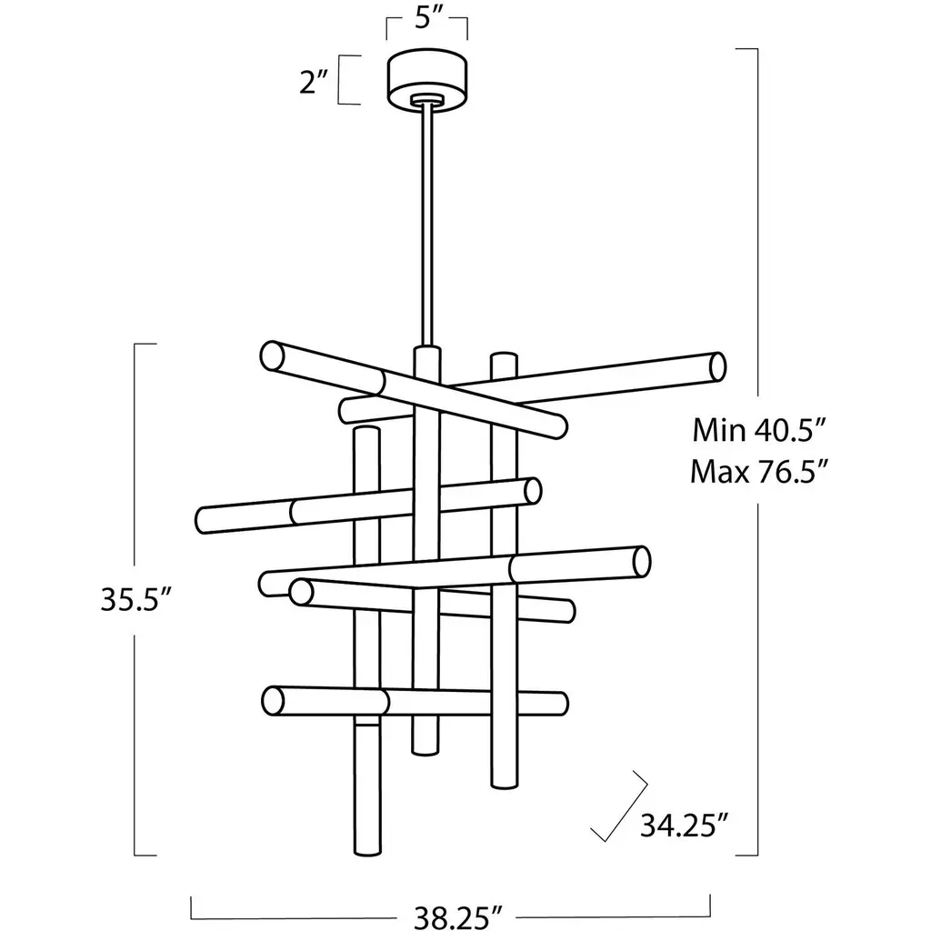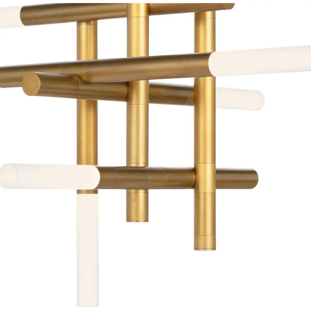 The Cass Chandelier is a modern interplay of vertical and horizontal arms adorned with frosted acrylic diffusers enclosing LED bulbs. With its striking presence and grid-like form, this chandelier takes center stage, elevating an entry, dining or living room.