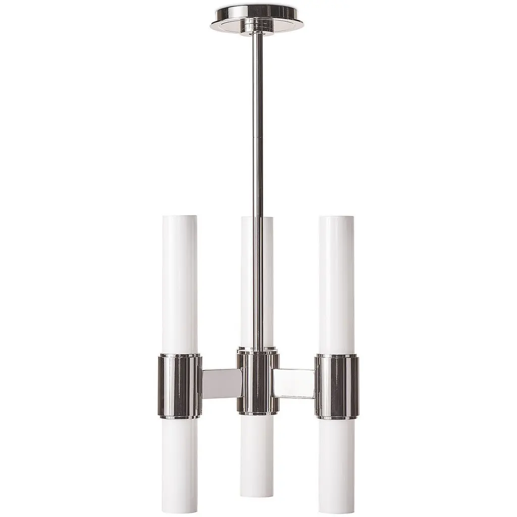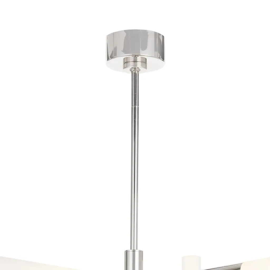 The Cass Chandelier is a modern interplay of vertical and horizontal arms adorned with frosted acrylic diffusers enclosing LED bulbs. With its striking presence and grid-like form, this chandelier takes center stage, elevating an entry, dining or living room.