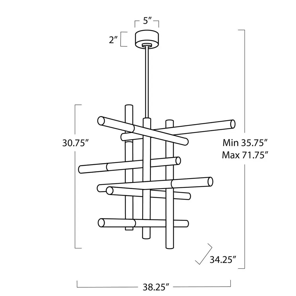 The Cass Chandelier is a modern interplay of vertical and horizontal arms adorned with frosted acrylic diffusers enclosing LED bulbs. With its striking presence and grid-like form, this chandelier takes center stage, elevating an entry, dining or living room.