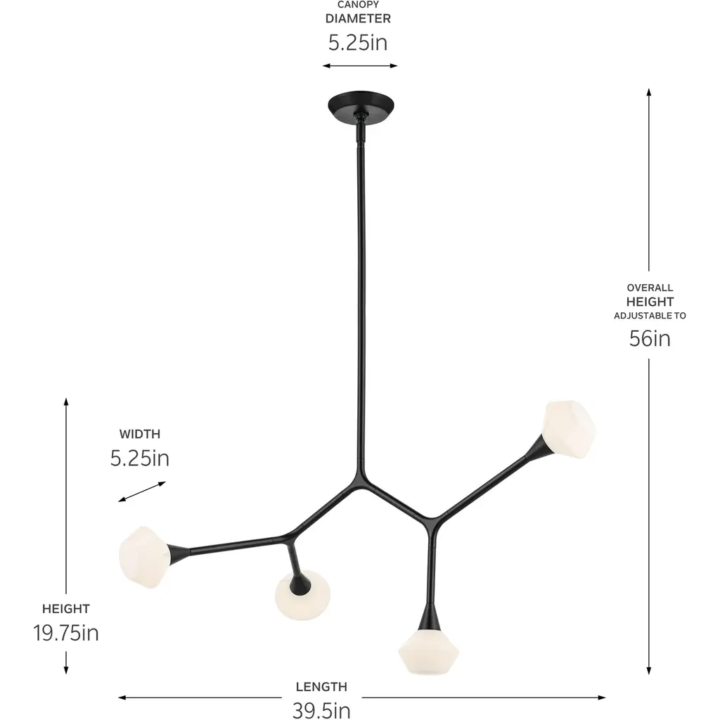 The Cassius convertible chandelier creates a celestial-inspired focal point that complements your modern look. When installing it, rotate its arms to customize it to your space. Easily remove the glass to clean or change its bulb. The opal glass creates a soft, diffused constellation of light. Cassius includes both a 6" and a 12" hanging stem, making it flexible for various ceiling heights.