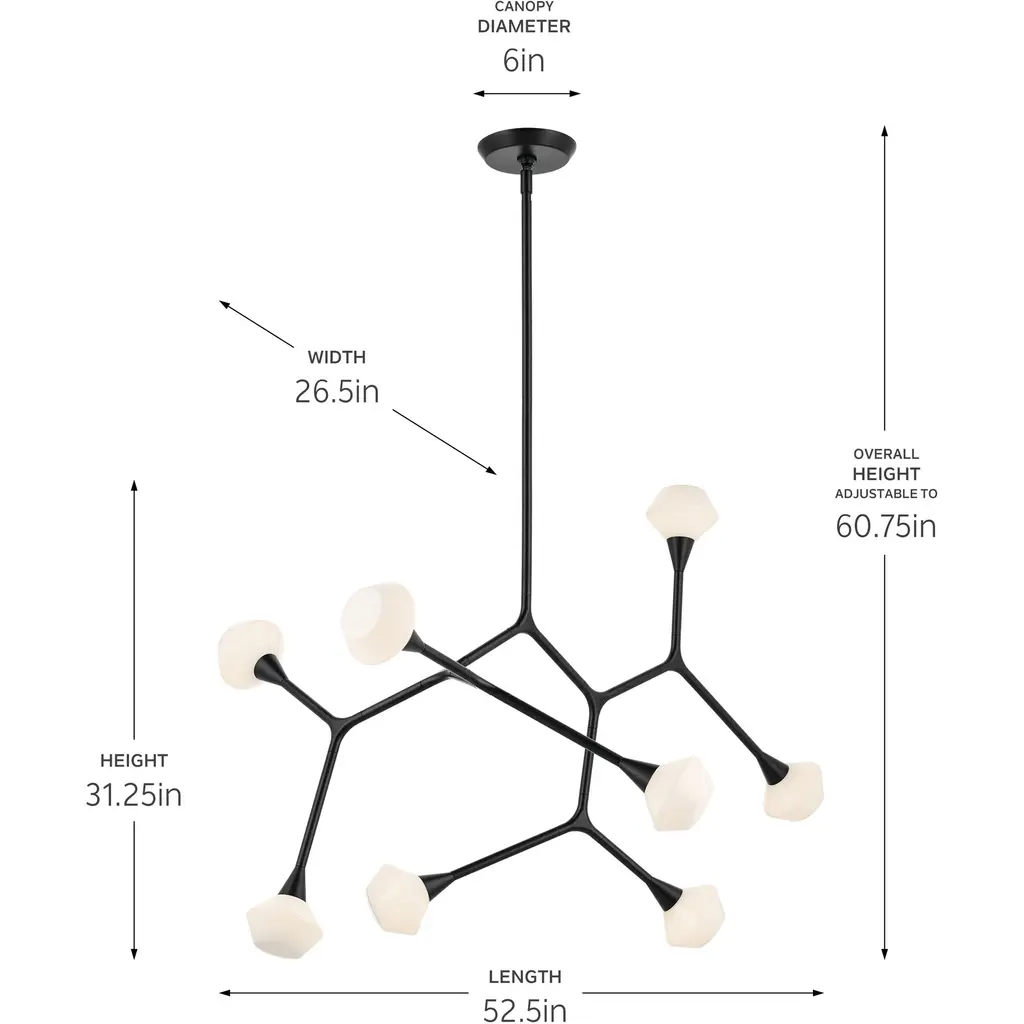 Cassius 8 Light 26.5 Inch Black Chandelier Ceiling Light, Convertible