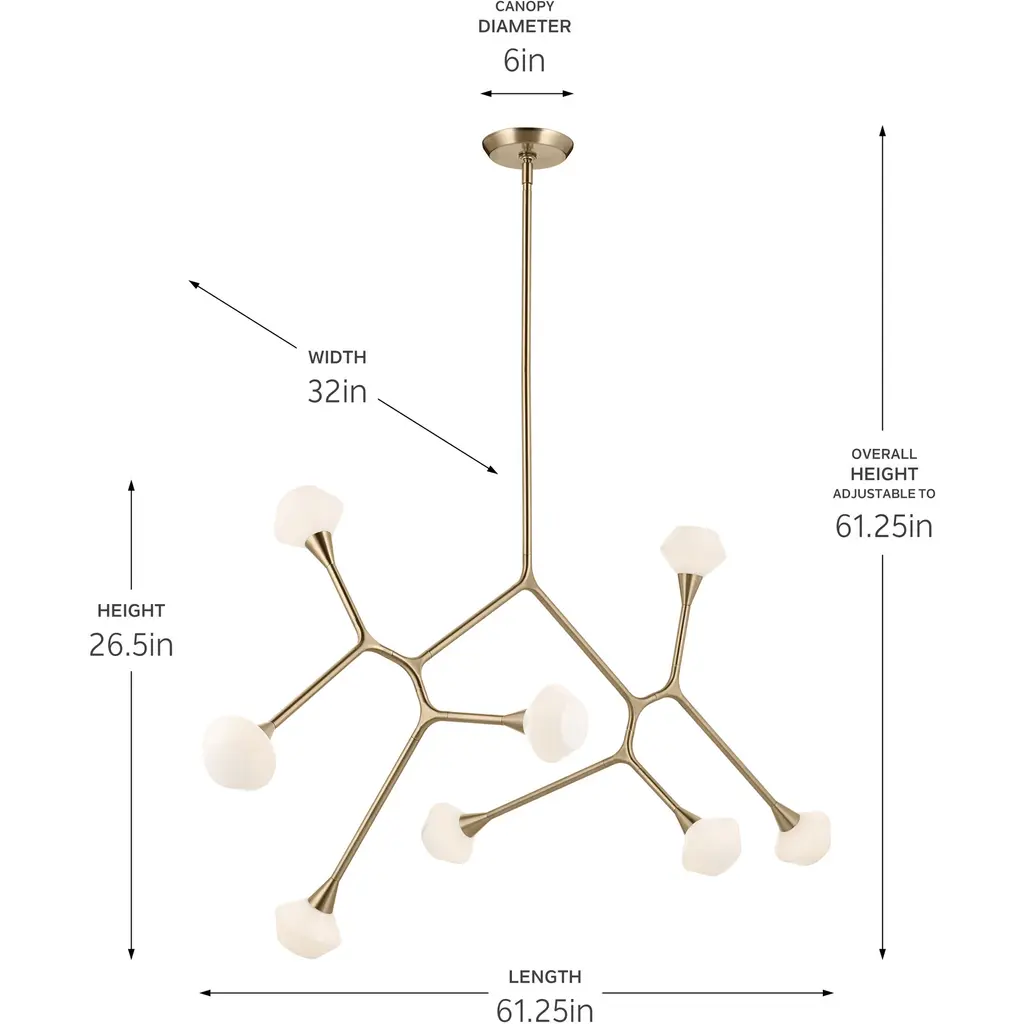 Cassius 8 Light 32 Inch Champagne Bronze Chandelier Ceiling Light, Convertible