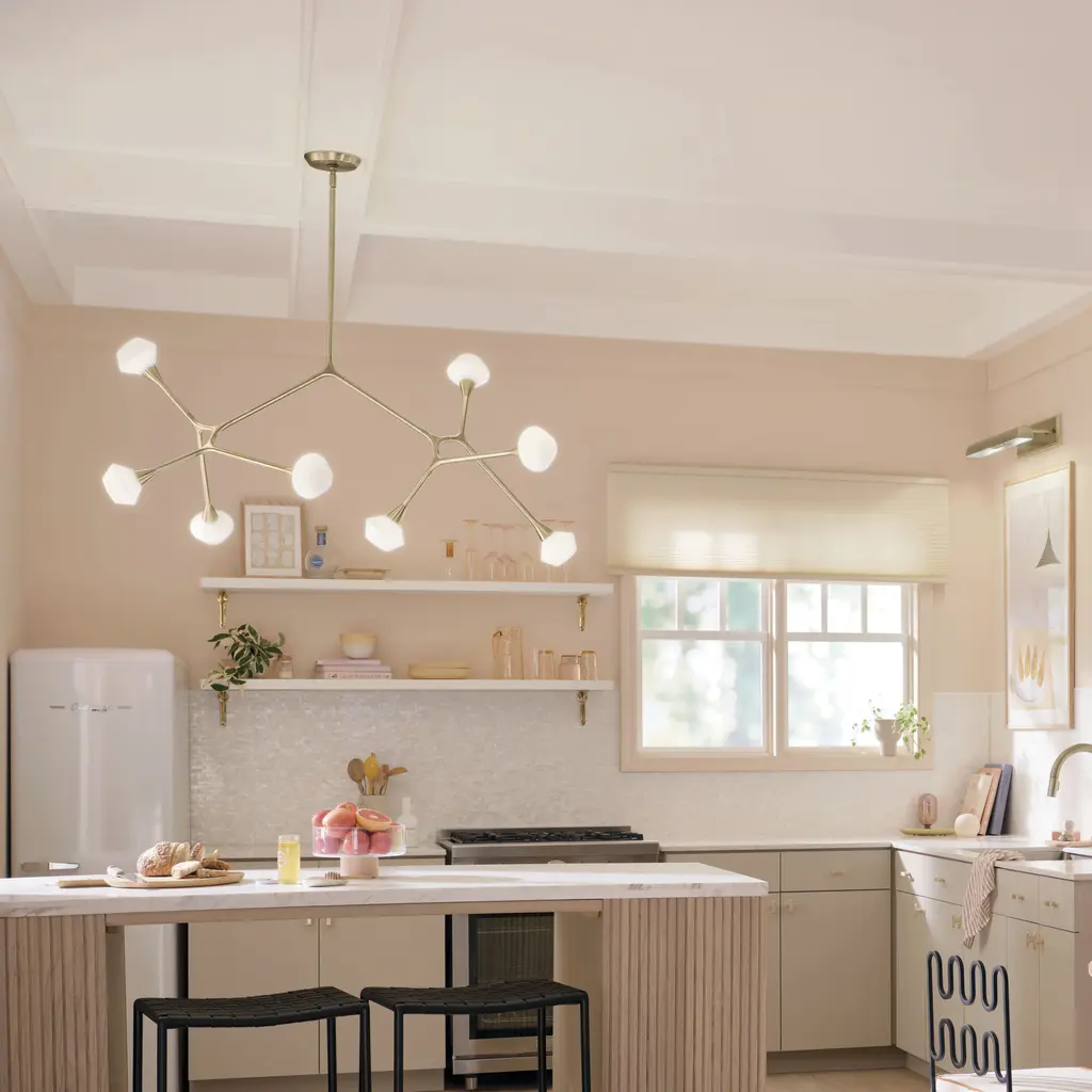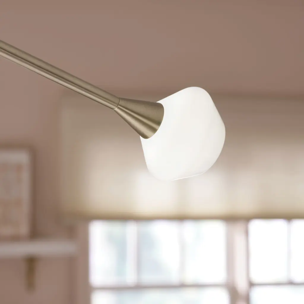The Cassius convertible chandelier creates a celestial-inspired focal point that complements your modern look. When installing it, rotate its arms to customize it to your space. Easily remove the glass to clean or change its bulb. The opal glass creates a soft, diffused constellation of light. Cassius includes both a 6" and a 12" hanging stem, making it flexible for various ceiling heights.