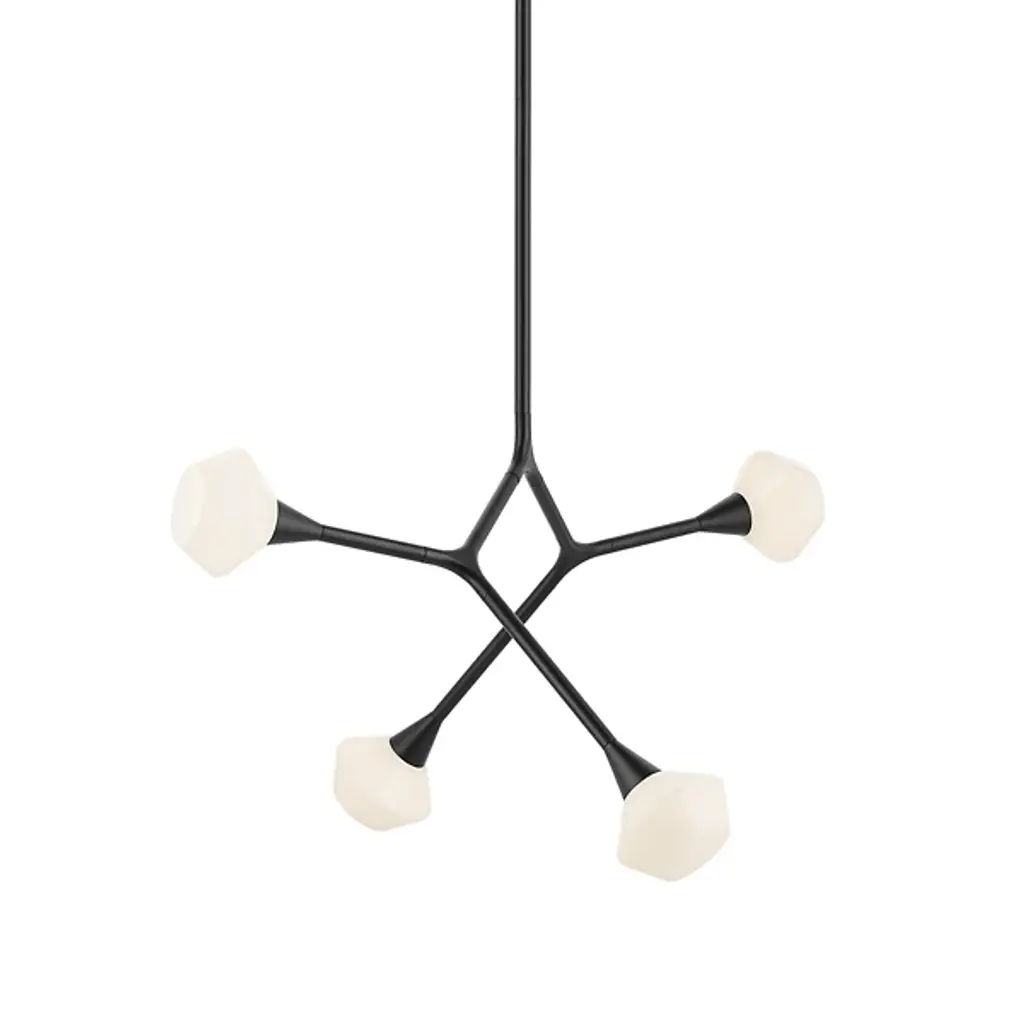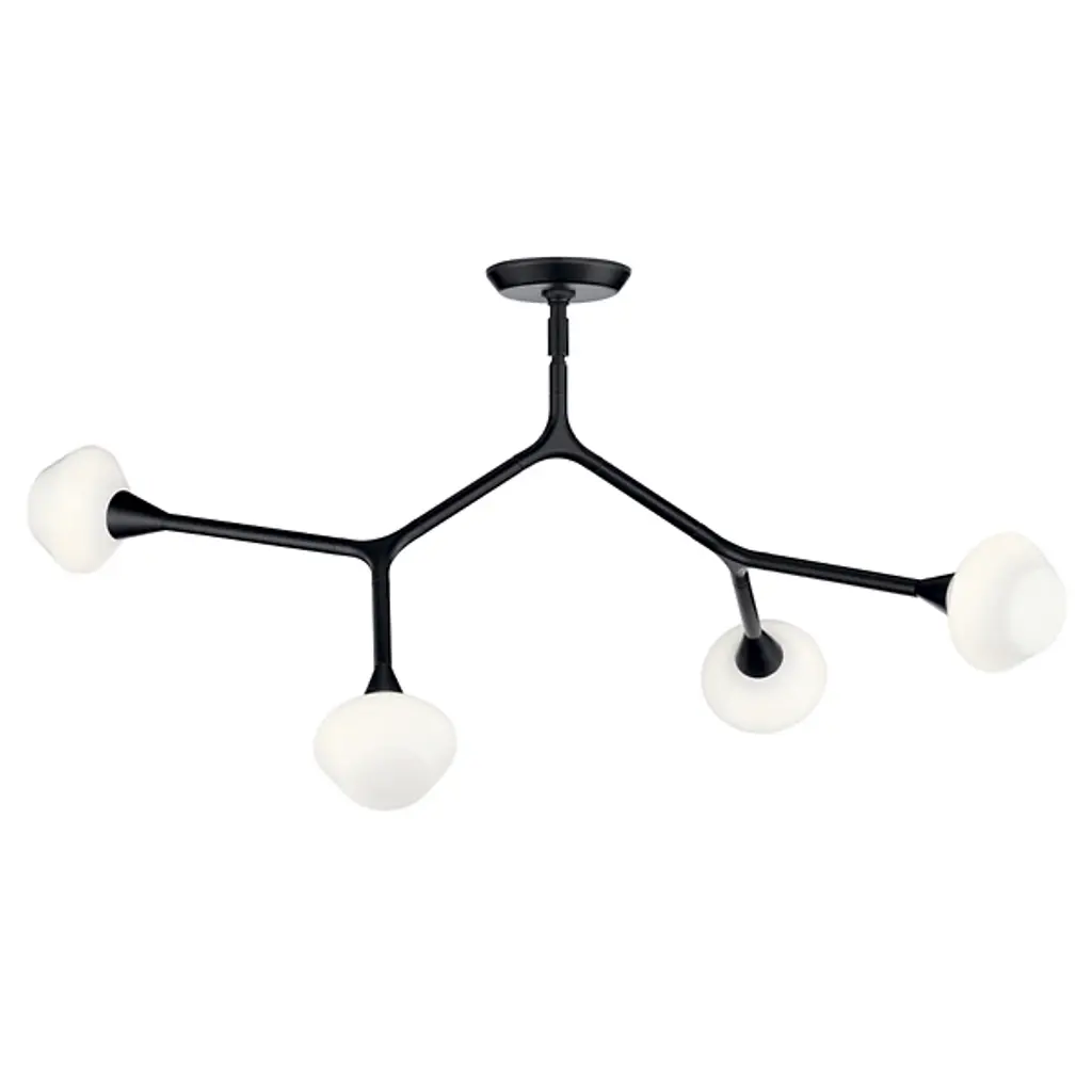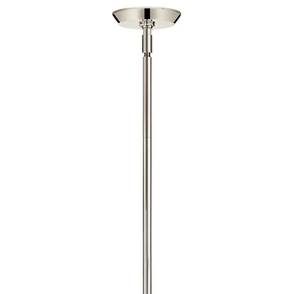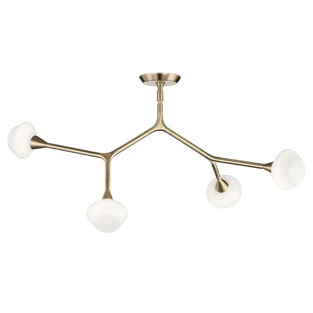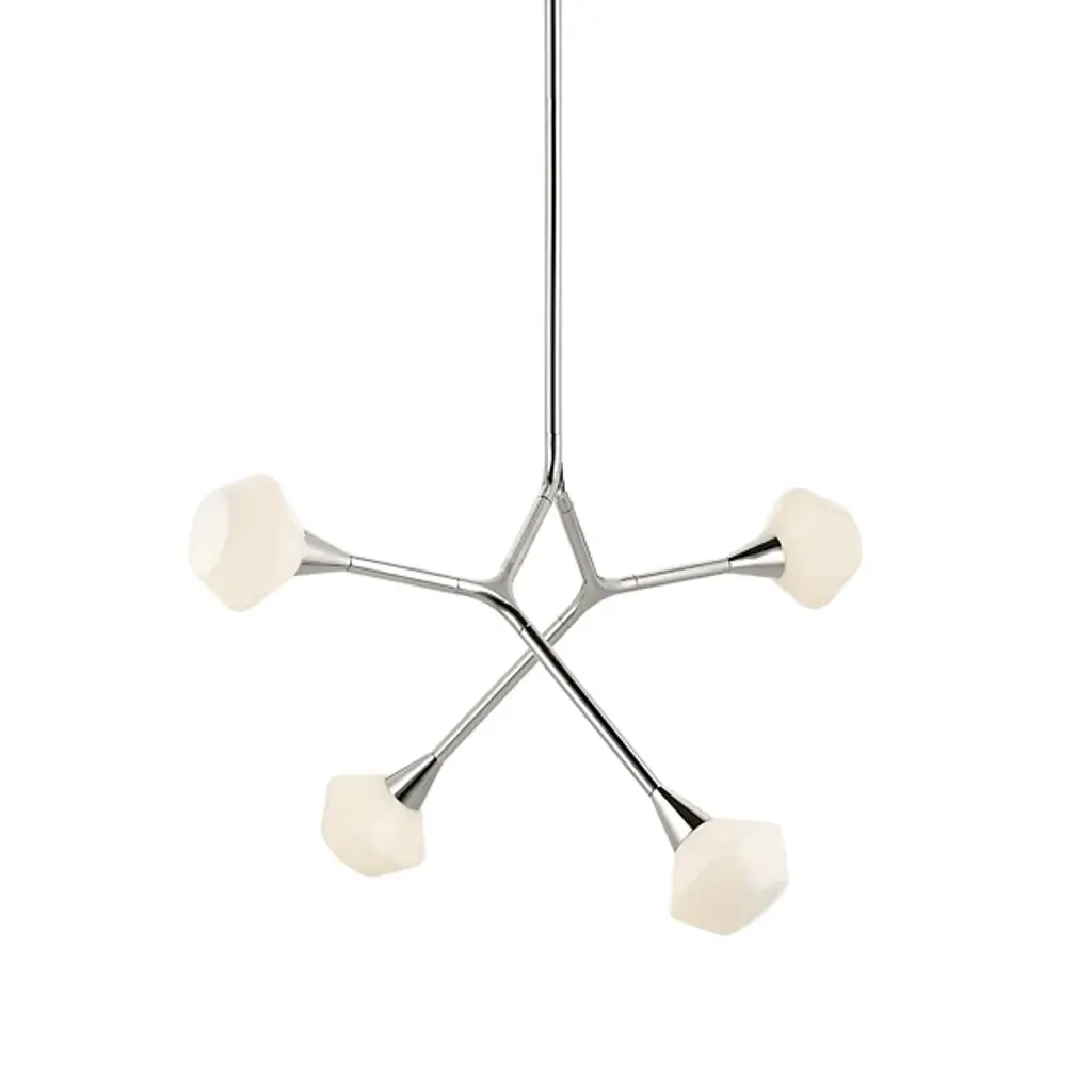 The Cassius Convertible Chandelier from Kichler adds a stellar-styled contemporary accompaniment to inside ceilings. A bevel-edged disc keeps the fixture in one place, transmitting a slender steel stem down to branching arms with gemlike opal glass diffusers blooming from each end. The arms are adjustable, and can arrange each diffuser to shed a soft, even ambiance in a multitude of configurations, burnishing the metal while being able to bring a dynamic presence to its surroundings.