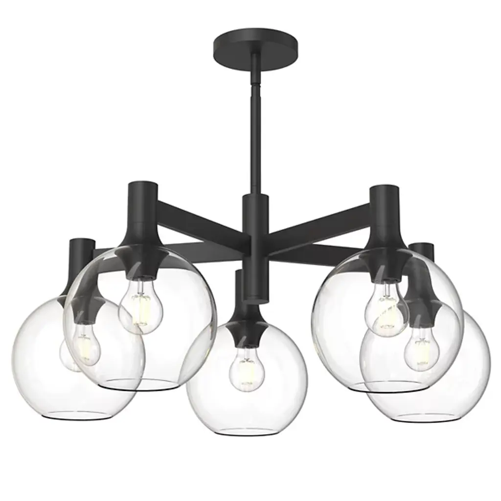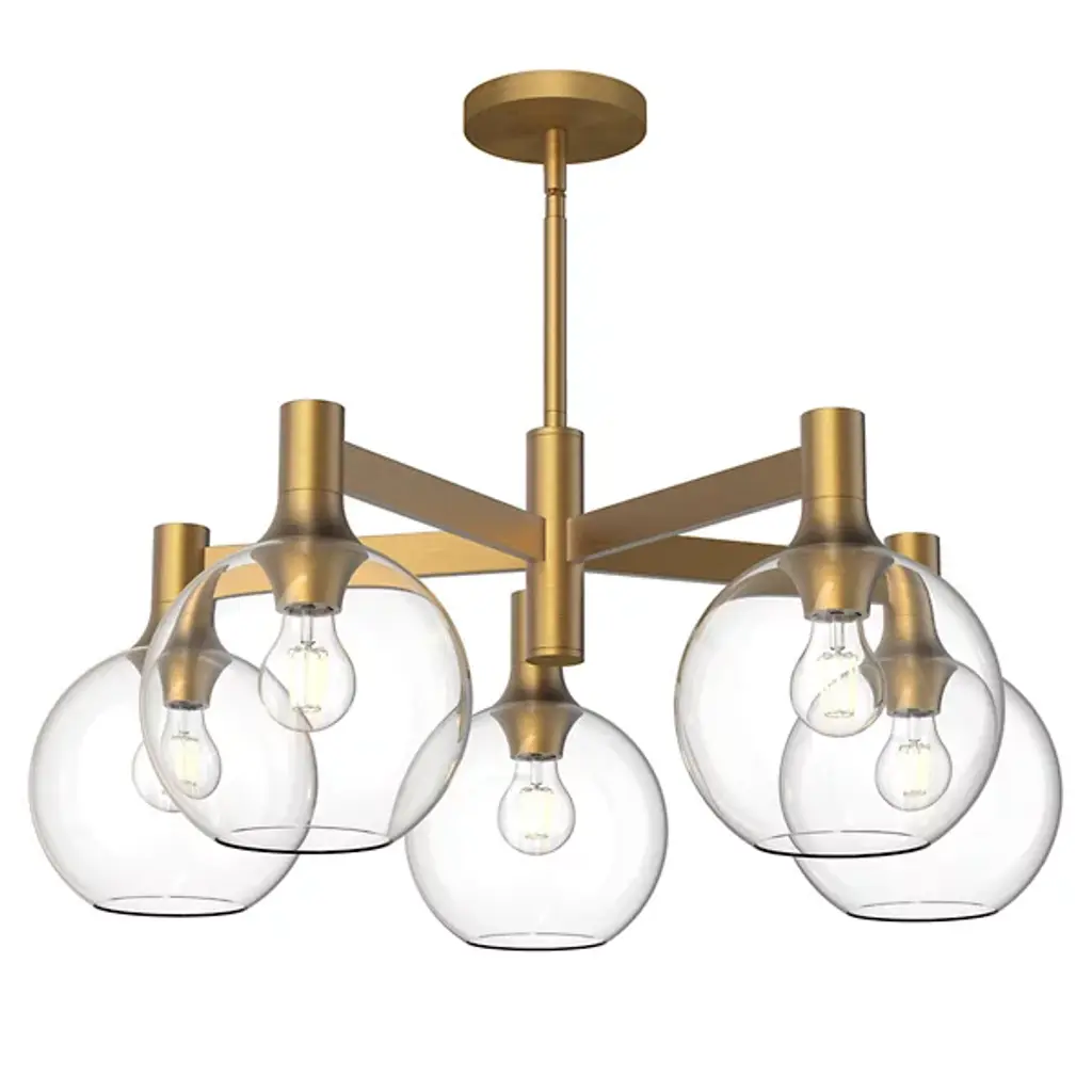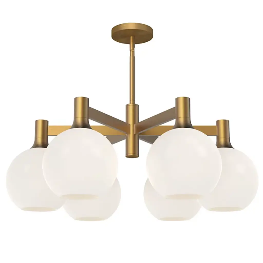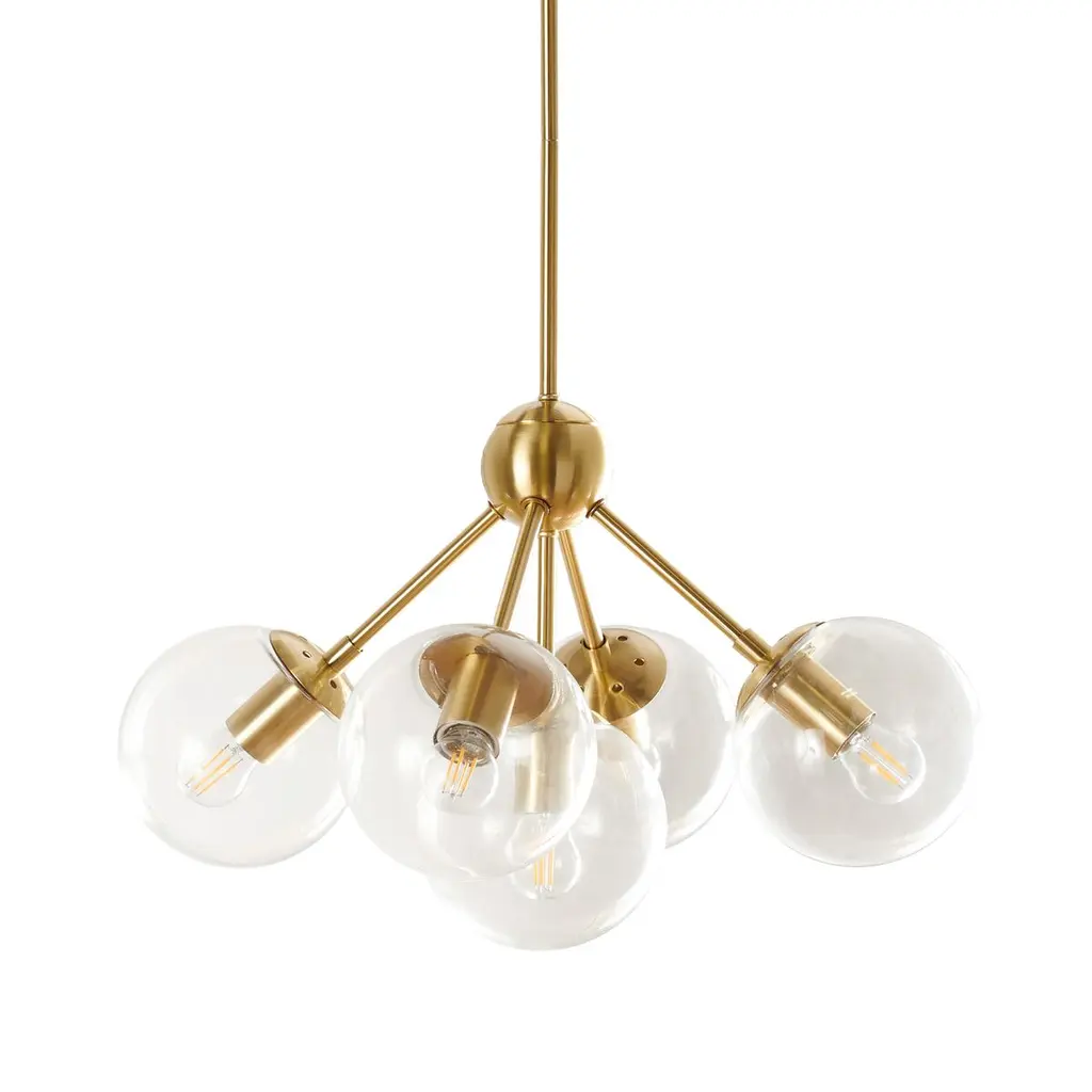 Radiant and regal. The Castilla Chandelier from Alora Mood engulfs the space with a heartfelt light, passed through a filter of handsome glass globes. The chandelier’s hemispheres clue one into its mid-century modern aesthetic. It stresses its mid-century style through the grabbing finish of its starry formation of arms. The elegant lamp holders at the end give the glass shades the illusion of floating overhead. These shades swell up with the bulb’s brilliant light, sending out a residual glow of rich warmth.