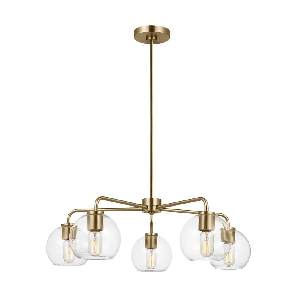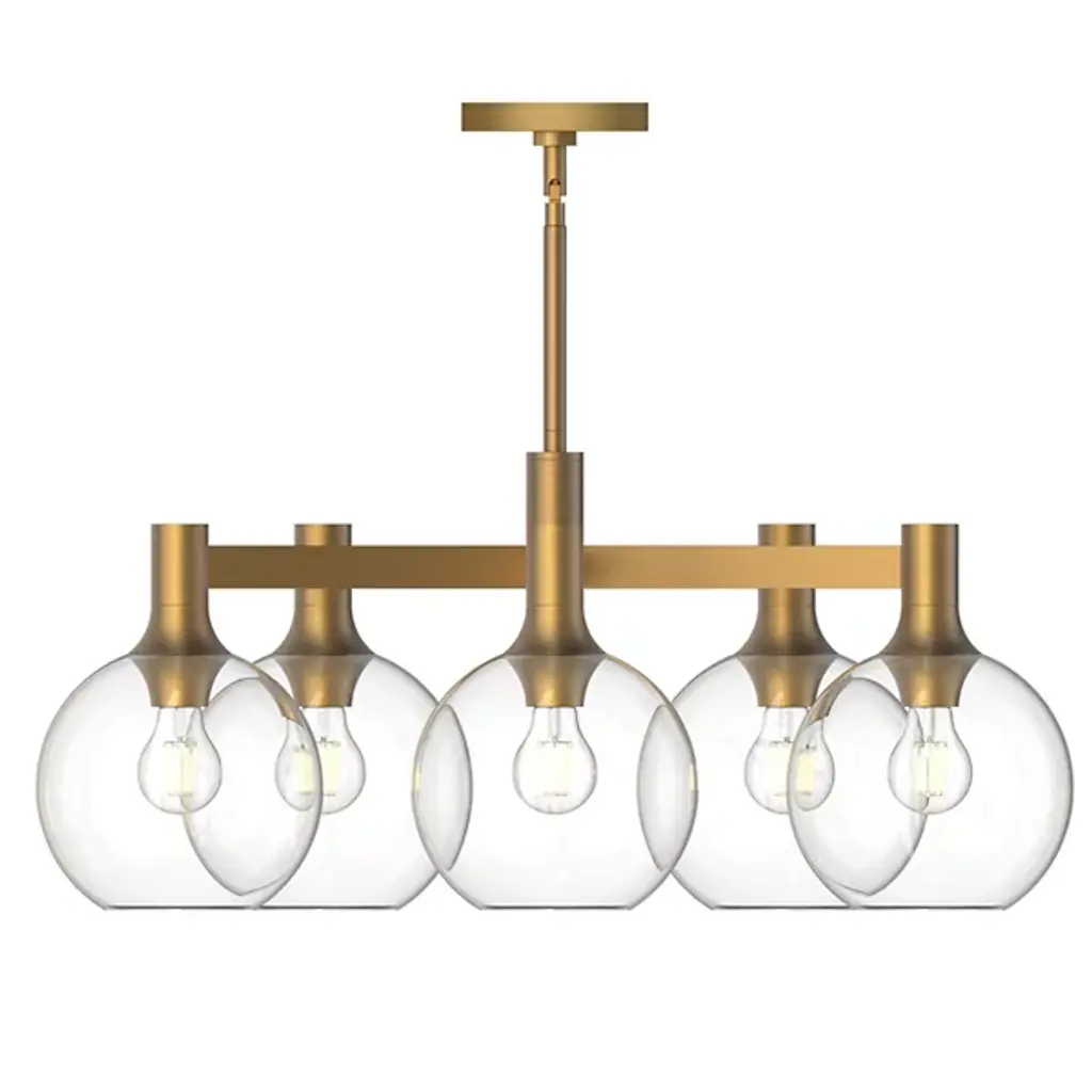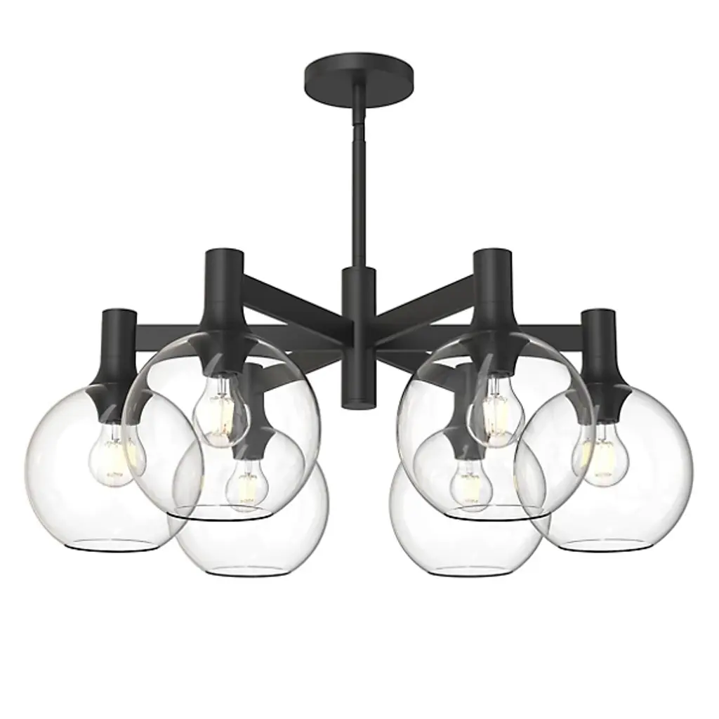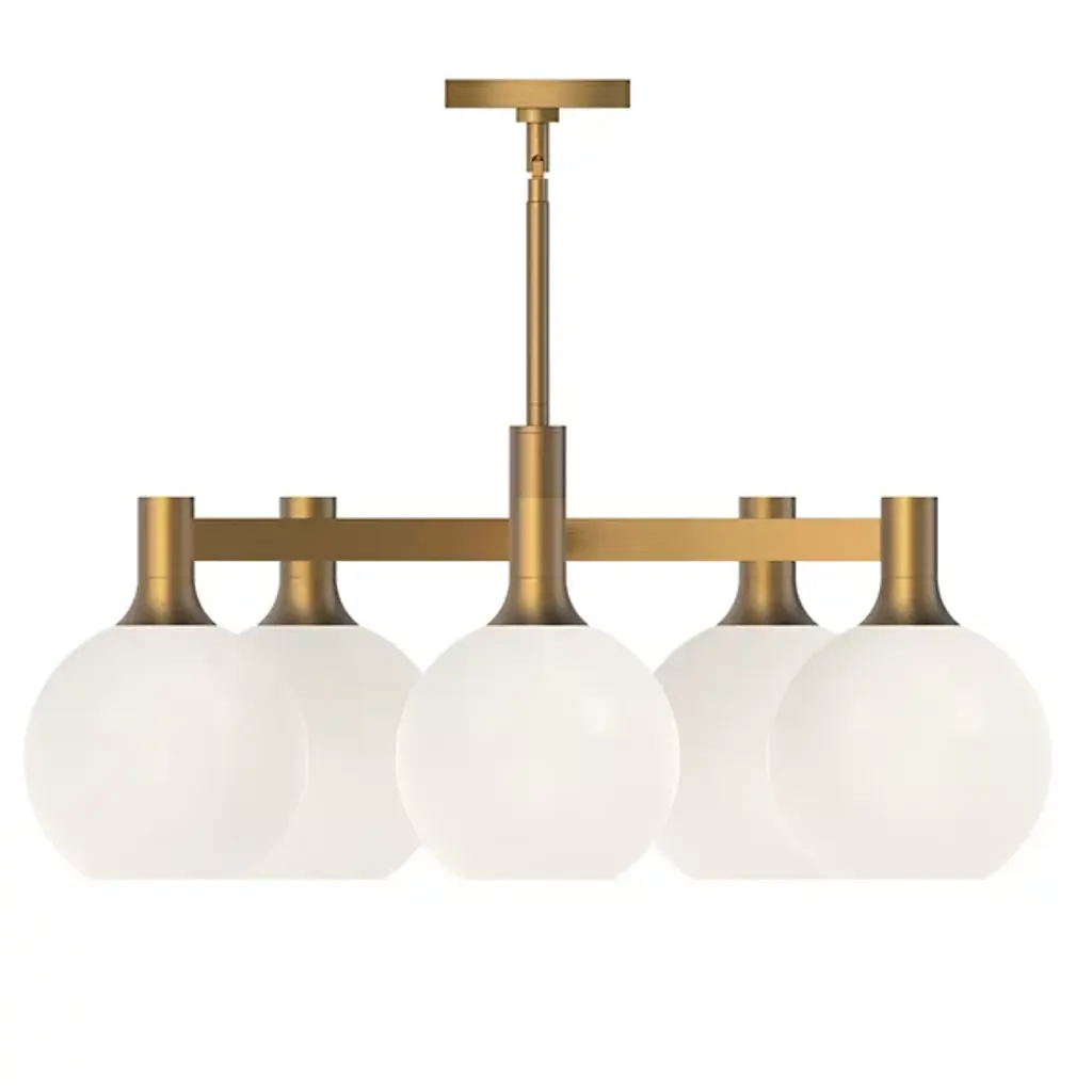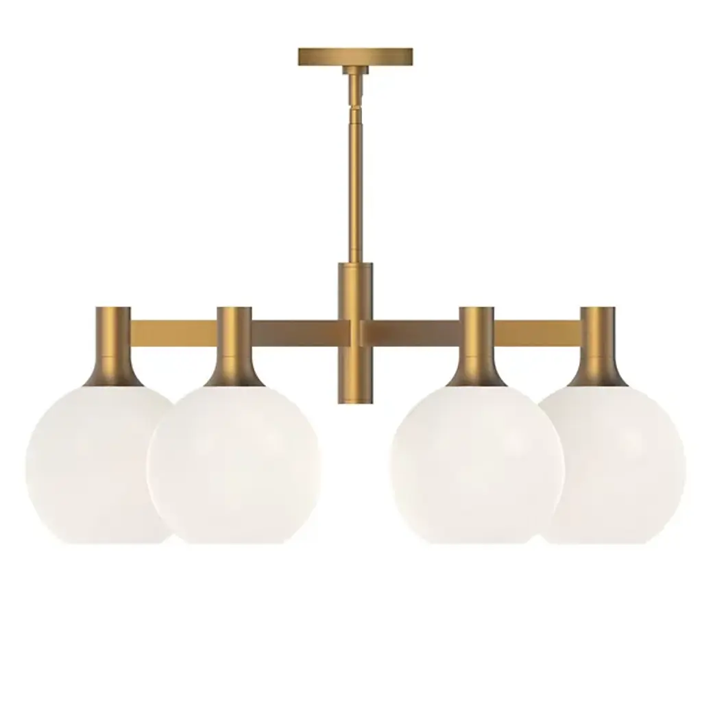Radiant and regal. The Castilla Chandelier from Alora Mood engulfs the space with a heartfelt light, passed through a filter of handsome glass globes. The chandelier’s hemispheres clue one into its mid-century modern aesthetic. It stresses its mid-century style through the grabbing finish of its starry formation of arms. The elegant lamp holders at the end give the glass shades the illusion of floating overhead. These shades swell up with the bulb’s brilliant light, sending out a residual glow of rich warmth.