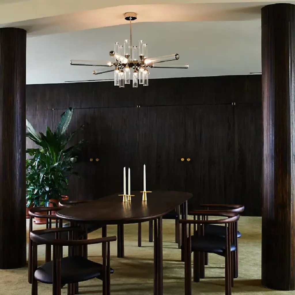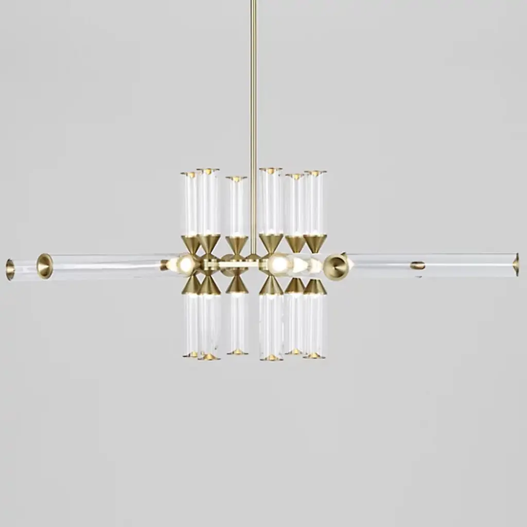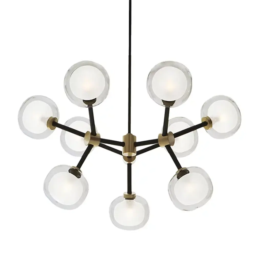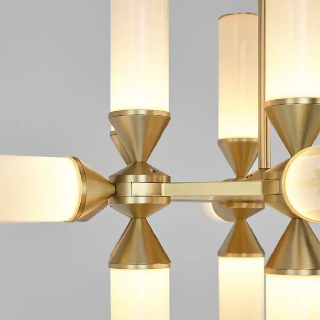 The Castle 18-01 LED Chandelier from Roll & Hill brings a regal sensibility to your living space. It gets its name from the game of chess and takes inspiration from the restrictions imposed upon the Castle and Rook pieces, creating a set of rules for movement. It is designed by Jason Miller, who combines Art Deco and transitional styles. The machined aluminum frames taper into hourglass-like forms as shades of refined glass are arranged in 2 tiers, emanating integrated LED light.