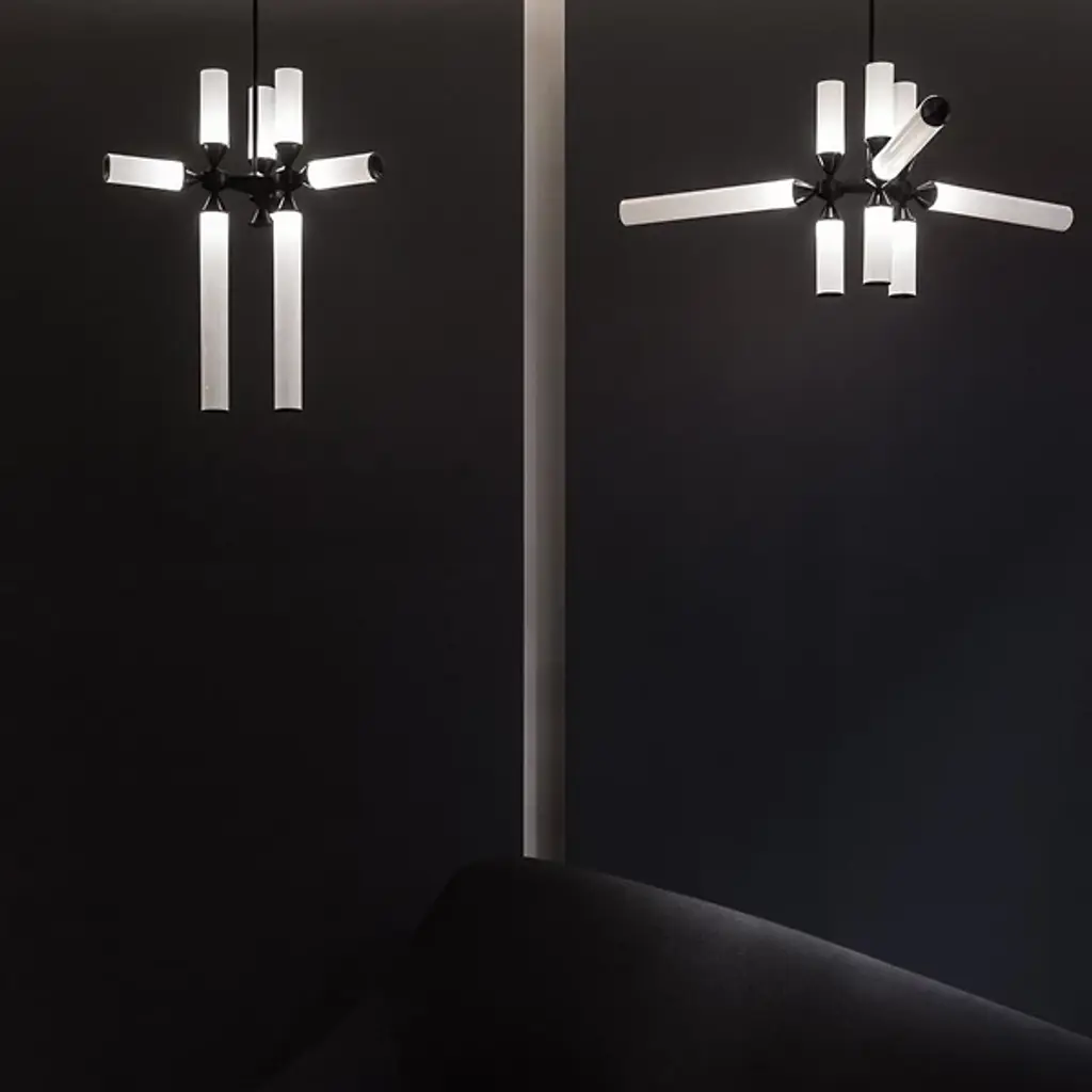 The Castle 9-02 Chandelier from Roll & Hill brings a regal visual element to a space as it casts an ethereal layer of light over a room. Designed by Jason Miller, this fixture’s stately design is inspired by the rook in a game of chess. With the ability to only move horizontally or vertically, the rook’s movements are expressed through slender glass tubes extending in the same directions. Conical machined aluminum sockets house integrated LEDs that illuminate the glass and create a heightened ambiance.
