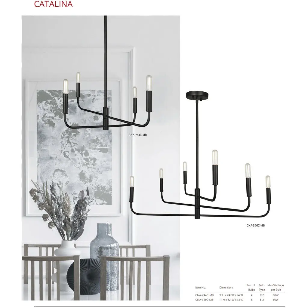 Catalina 6 Light 32 Inch Matte Black Chandelier Ceiling Light