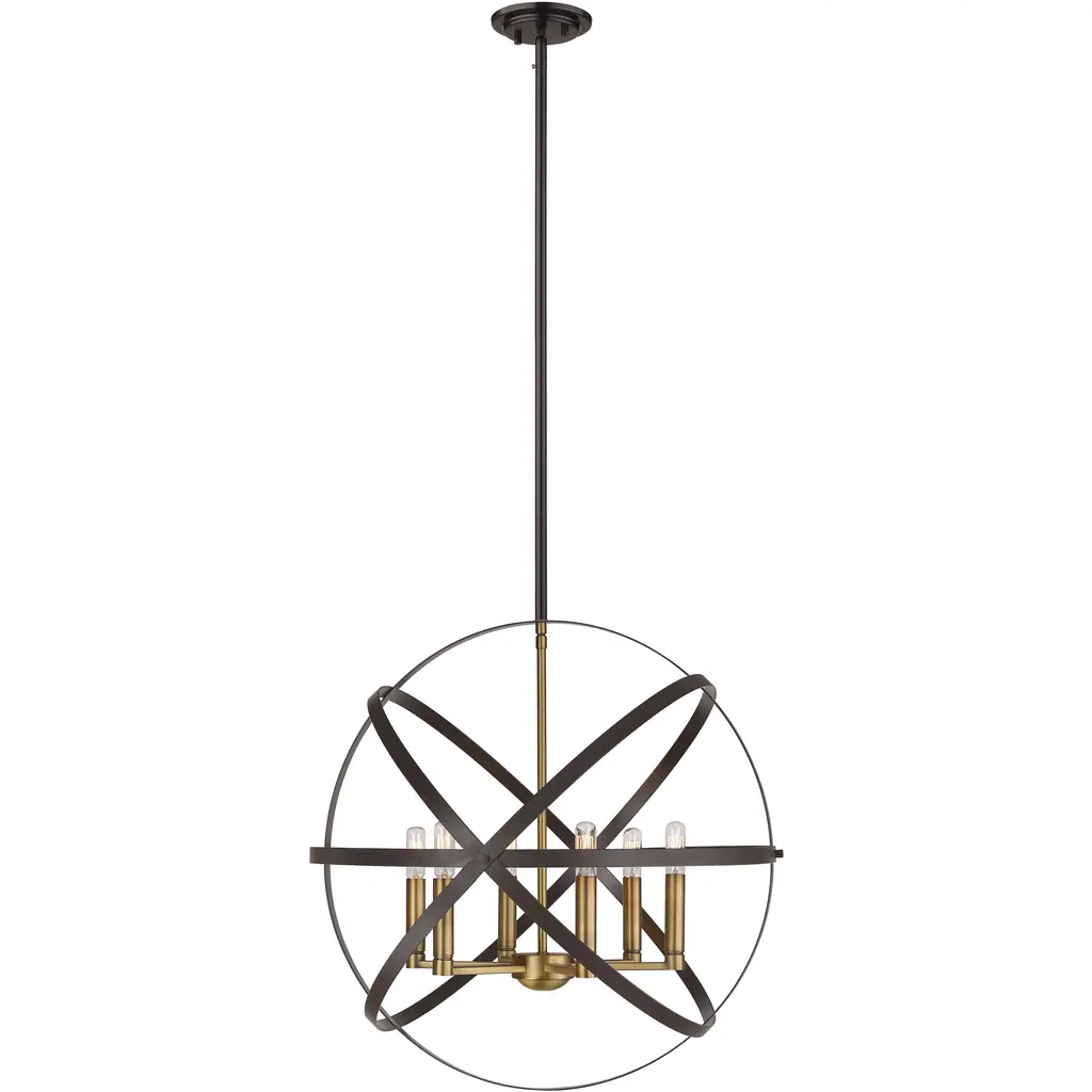 Fusion, energy, and a hint of softness blend together in this inspiring six-light pendant light. With a fun futuristic silhouette that combines hammered black iron ribbons with a chrome finish steel bulb base, its industrial spirit is sewn up with a collection of six candelabra-style bulbs.