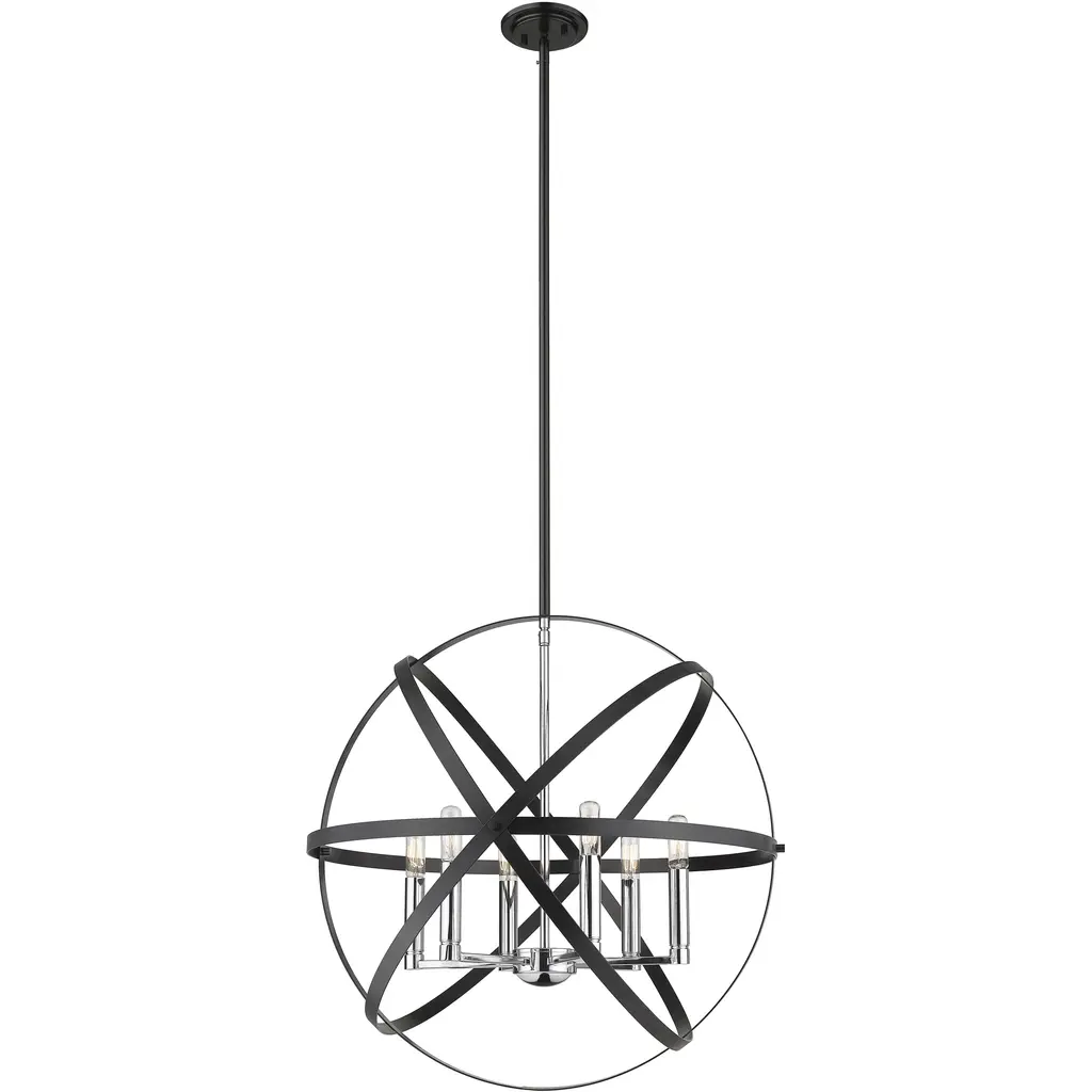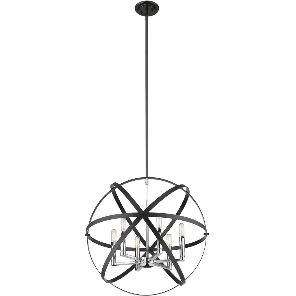 Cavallo 6 Light 24 Inch Hammered Black And Chrome Chandelier Ceiling Light