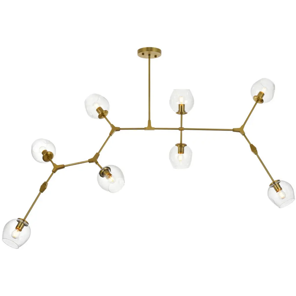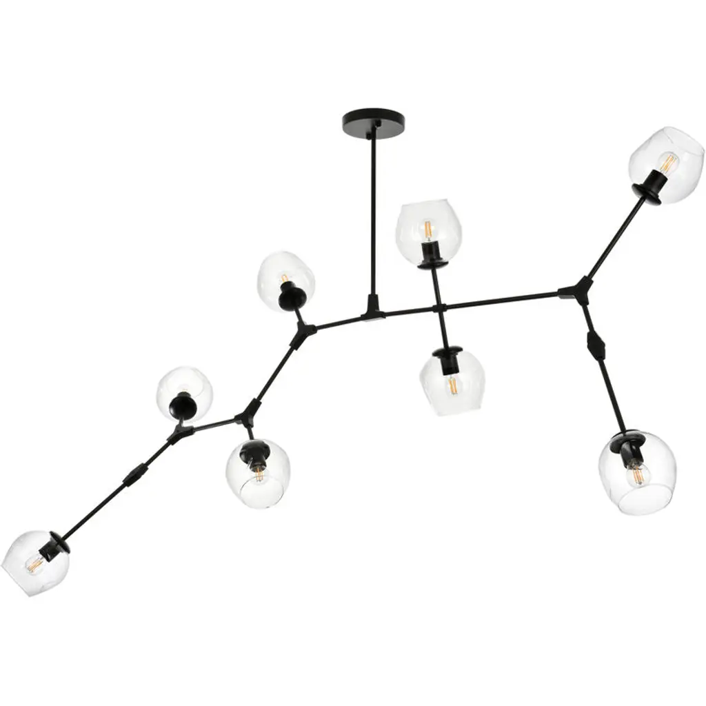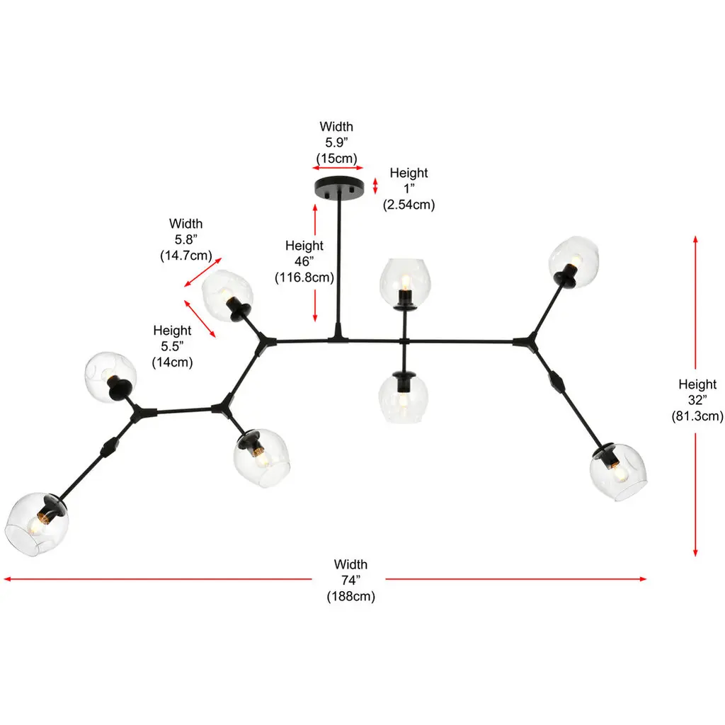 Introducing the Cavoli 74-Inch Chandelier, a perfect fusion of contemporary design and geometric allure. Crafted from durable iron, this visually captivating centerpiece not only adds a sleek modern aesthetic to your space but also ensures a robust and enduring lighting solution. The chandelier holds UL certification, guaranteeing safety and performance adherence. Boasting eight lights with clear glass globe shades, this chandelier offers a stunning visual display, complemented by a dimmable feature for personalized lighting preferences. (Bulbs not included). Illuminate your space with confidence and style.