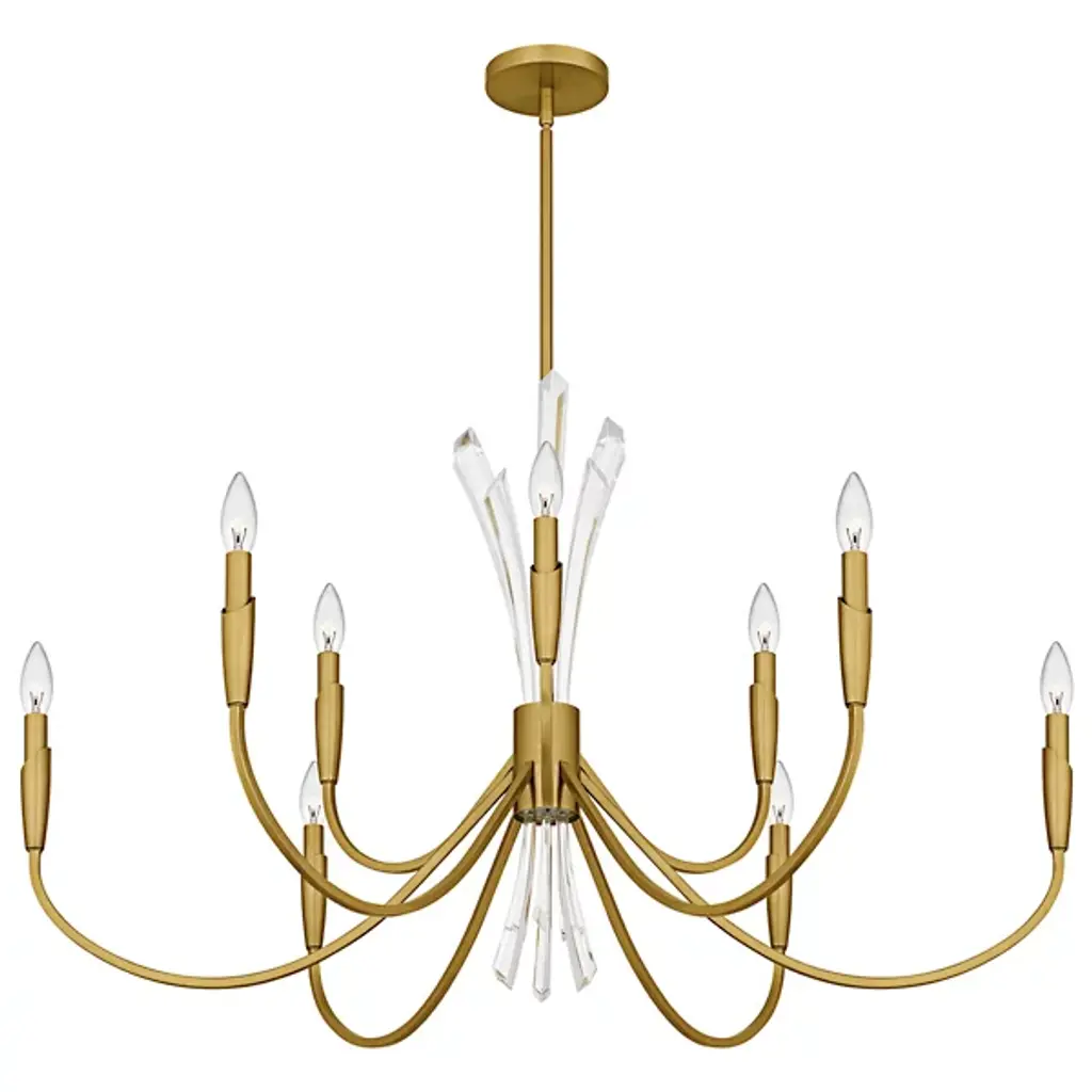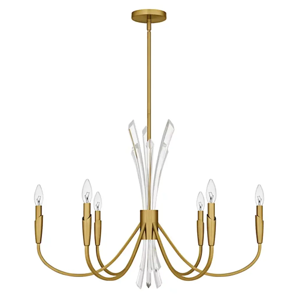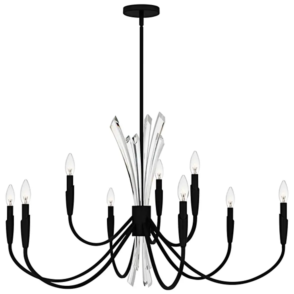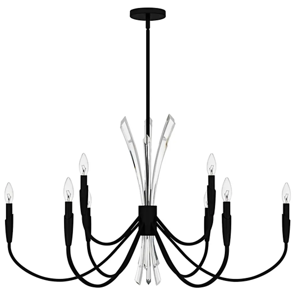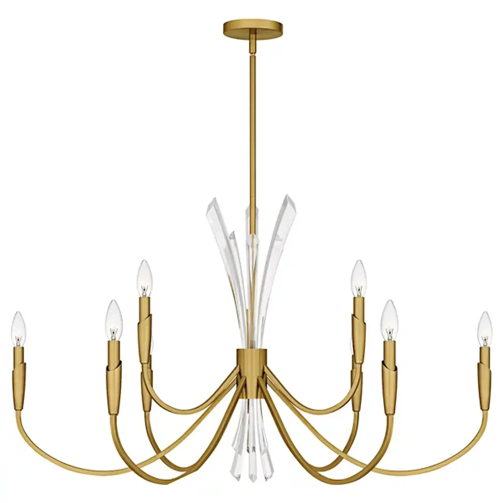 The Cecily Chandelier from Quoizel improves rooms with its distinctive crystal spears bursting from the center hub. Clear crystal elements create dynamic light refraction while gracefully curved arms extend outward to hold candle-style lights. Its central arrangement provides unexpected dimensions, catching light from multiple angles throughout the day. Each curved arm flows naturally from the center, creating a pattern that draws the eye around the entire fixture. This suspension is ideal for dining areas, entryways, or living spaces where distinctive lighting makes a difference.