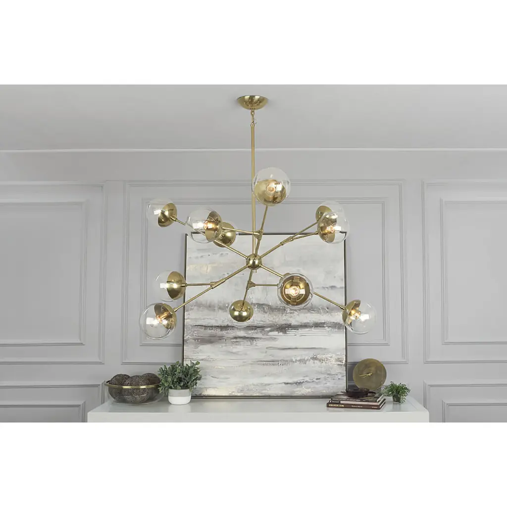 This 12 light Chandelier from the Celeste collection by Robert Abbey will enhance your home with a perfect mix of form and function. The features include a Modern Brass finish applied by experts. This item qualifies for free shipping!