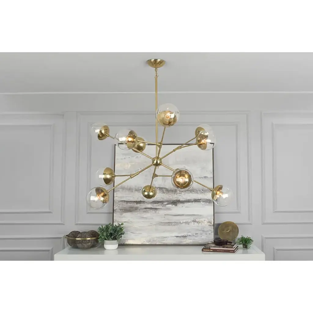 Beauty and kinetic energy are at the heart of the Celeste chandelier’s design. Reminiscent of a constellation of stars, Celeste’s clear glass globes provide brilliant light. This piece is perfect for creating a striking, modern focal point in your space.