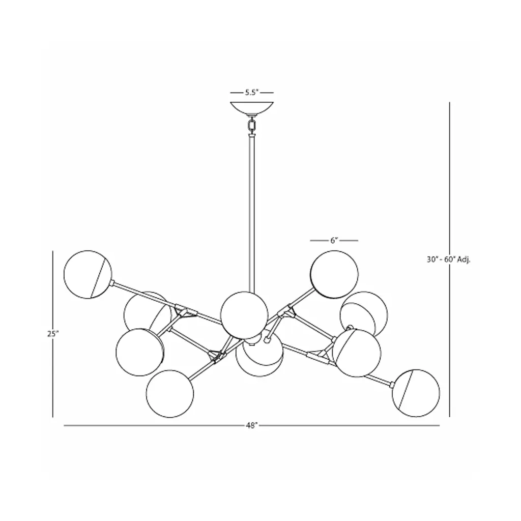 With an elegant blend of contemporary and retro style, the Celeste Chandelier from Robert Abbey is a striking statement piece. This fixture features twelve lights at the end of slender arms that extend from a sputnik-style body and branch out into secondary stems. Clear glass globes surround each light source while metallic caps evoke mid-century modern design. This fixture fills the room with warm and embracing light as it elevates the look of any room in the home.