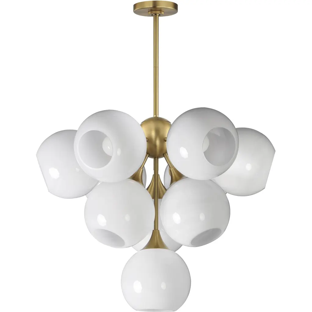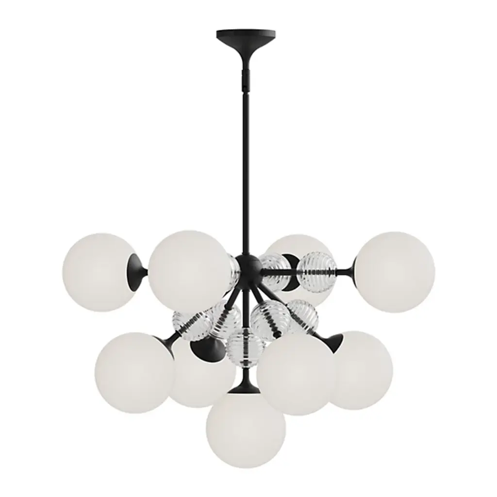 Alora Mood presents the Celia Large Chandelier. Celia inspires those who are crafty at heart. Stunning, unique ribbed-glass-bead elements adorn a fresh and feminine frame. Glass globes of illumination top off this eclectic masterpiece perfectly. The Celia is sure to be the talk of any space for its unique mix of pattern, texture, and style.