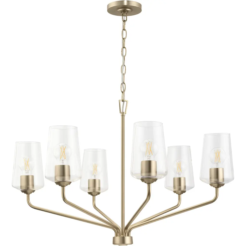 Illuminate your space with the refined elegance of the Celino 6-Light Chandelier. With shades inspired by the graceful silhouette of hand-crafted crystal wine glasses, each light fixture is a testament to meticulous artistry and timeless design. The perfectly proportioned clear glass shades offer a seamless and visually stunning form that delivers bright light to the surrounding space. Polished metal arms finished in rich Champagne Bronze curve upwards, cradling the glass shades with a gentle embrace. Lighting from the Celino will infuse your home with a sophisticated and inviting ambiance.