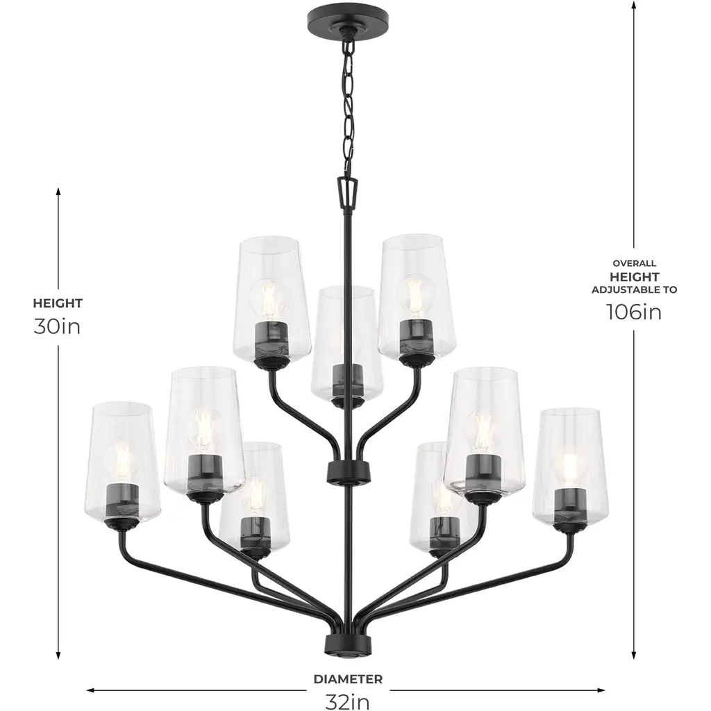 Celino 9 Light 32 Inch Black Chandelier Ceiling Light