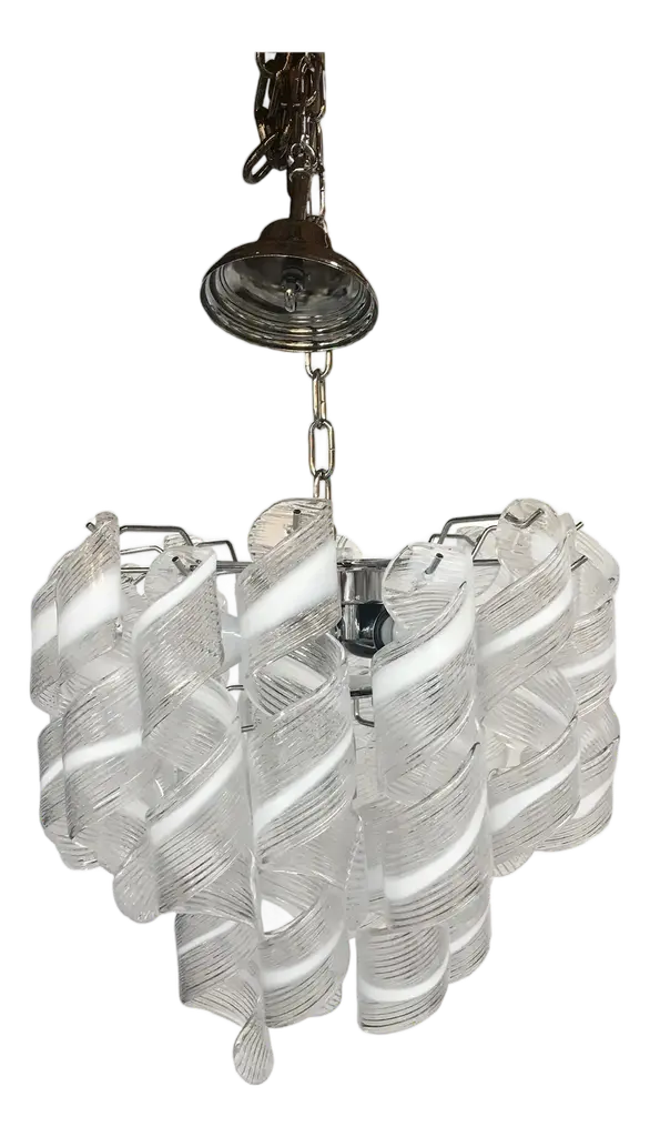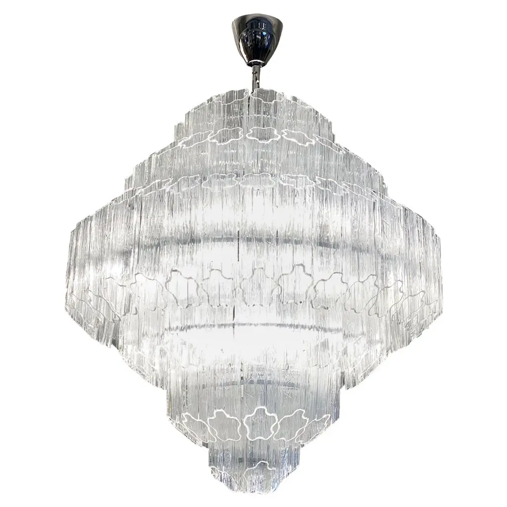 Add a sense of formality to expansive modern dining rooms and entryways with the Slamp Ceremony Chandelier. This large-scale piece is granted grandeur by numerous curving strips of Fume or White Cristalflex. The resulting layers of curved panels are elegant and lacy, and provide stunning sparkle. Designed by Bruno Rainaldi.