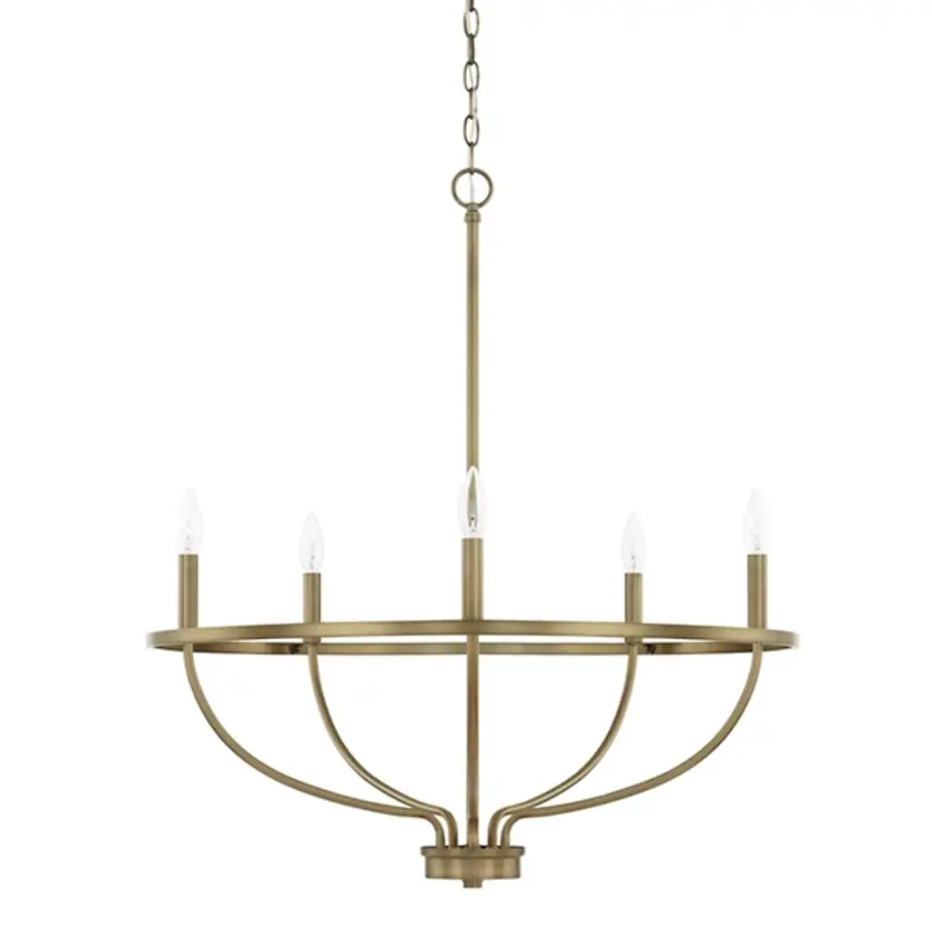 Cesar 5 Light 29 Inch Aged Brass Chandelier Ceiling Light