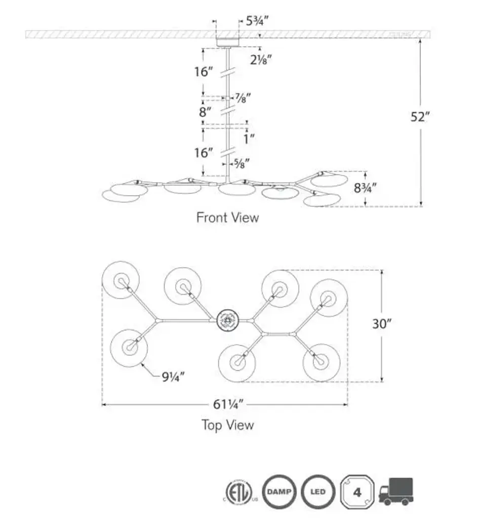 The Brindille by Champalimaud strikes a balance between organic beauty and technical innovation. As if a branch laden with petals, the slender gunmetal, polished nickel, or soft brass arms of the suspended frame support petal-like white glass shades. Thanks to a spoon-shaped brass fitting technique, these can rotate 360 degrees, offering varied and adjustable lighting when and where needed—a poetic focal point above any dining room table. Designer: Champalimaud Fixture Height: 8.75" Min. Custom Height: 14" O/A Height: 52" Canopy: 5.75" Round Mounting: Rod Socket: Dedicated LED Wattage: 40w (3200lm) Safety Rating Location: DAMP Note: Custom Height Available Assembly Required? No
