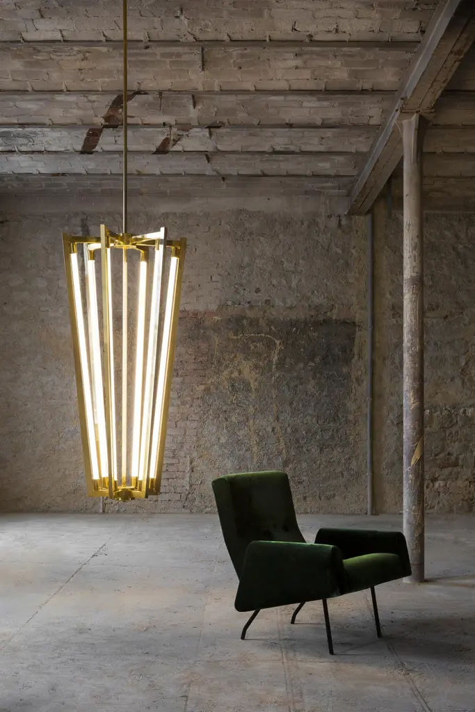 Chandelier 10 by Magic Circus EditionsDimensions: W 40 x H 120 cmSpheres: glass 25Materials: smooth brass, glassAll our lamps can be wired according to each country. If sold to the USA it will be wired for the USA for instance.Rethinking, reimagining, redesigning familiar objects that we look at every day without ever really seeing them and using light to tell stories, this how Marie-Lise Féry sees her work. Offering a new take on our urban heritage, changing our perspective through her work on scale and usage. Since 2015, Magic Circus Éditions has been setting the world of lighting ablaze, creating airy, playful and magical designs that merge retro with sleek and contemporary.A free-spirited antiquarian, founder Marie-Lise Féry draws inspiration from the world of cabarets and the magic of the circus to give shape to imaginative, fun and playful collections. The air of magic she breathes into her work reveals a wealth of interpretations and widens possibilities for creative interiors.The combination of traditional know-how, outstanding craftsmanship, and her imaginative take on historical, everyday objects lends an unexpected and charming quality to her creations.Féry’s lights are designed just like magic lanterns, precursor to modern-day cinema -, inspiring wonder through oversized, seemingly weightless compositions and understated references.Each collection has its own inspiration: the first models of street lighting for Collection 01; the happy memories of funfairs, sweets and balloons for her latest collection Balloon; the Far East for Collection 02; and the colorful, carefree spirit of the 1970s for Pop-Up, released in 2019. Magic Circus Éditions draws on airy designs, dream-like inspirations, colors and fun to create a sense of enchantment.Magic Circus Éditions founder Marie-Lise Féry was born in Paris. After studying art business, she moved to New York to start her career. Fascinated by the city’s architecture, she found an endless source of inspiration in the Big Apple’s monumental decors. Returning to France to settle down in Lyon, she opened an antiques gallery named Un Château en Espagne, and started telling her own stories through objects she gleaned on markets all around the country. A way for her to perpetuate her mother’s motto: “Objects with a soul will always belong”. Since 2015, the year she established Magic Circus Éditions, she has moved on to lighting as a new medium for telling her stories, bringing the magic of the show into home interiors. With her love for the circus, turn of the century cabarets and music halls, Marie-Lise Féry’s love of unusual objects has remained strong, but now prefers to focus her attention on pieces she has imagined herself. With a fun and light-spirited approach, she creates a bold visual effect that elicits instant attraction. She collaborates with some of Europe’s greatest artisans, from Prague and Murano to Clermont-Ferrand, working for instance with a Czech company specializing in sculpting glass using a diamond-blade saw, or an auto body shop renowned for their work with lacquers. The refinement of shapes and finishes, bespoke designs and technical excellence all contribute to creating pieces that inspire surprise and wonderment. In the manner of Wes Anderson in Grand Budapest Hotel, blending together elegance, humour and unexpected details, her designs never fail to surprise. Attentive to the effect of her designs both in daylight and at night, Marie-Lise Féry takes us on a journey through space (from outside to inside) and time (from yesterday to today).