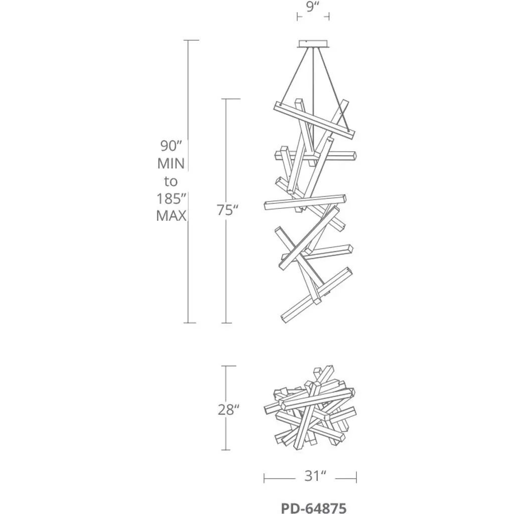 Like piano keys falling through the air, Chaos freezes a moment in time with breathtaking elegance. Ultra-thin powered aircraft cables stabilize the suspension, holding everything in place with as little visual interference as possible, and each section of this sculptural form is equipped with consistent, highly efficient LEDs for refined illumination throughout. Available in brushed aluminum, aged brass or black. Let chaos reign.