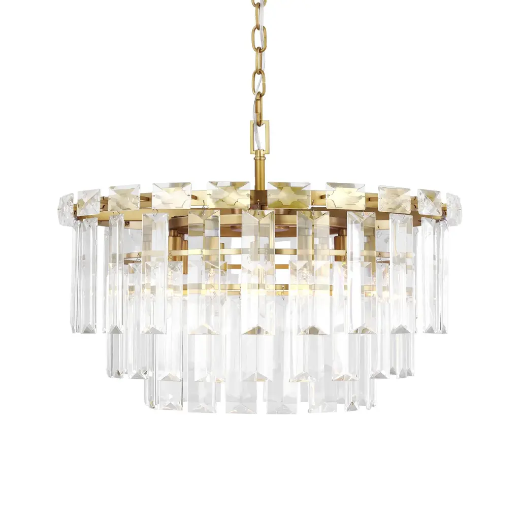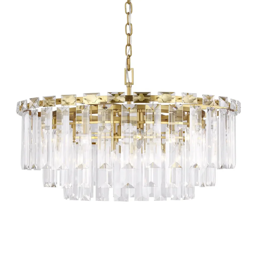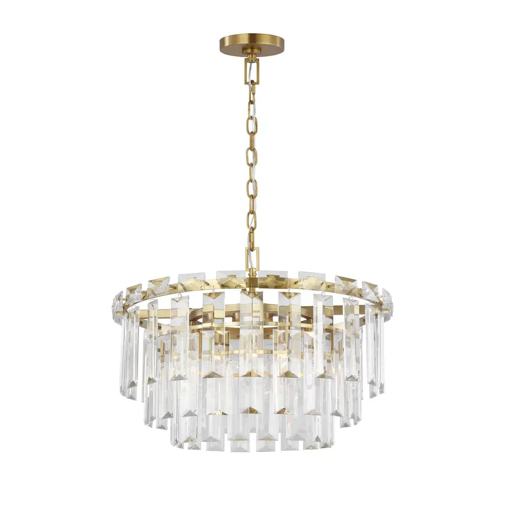 Illuminate your home with the stunning Chapman and Myers Arden Chandelier by Visual Comfort & Co. This luxe piece of lighting features a grand metal frame layered with brilliant cut clear glass crystals that let the warm light from its incandescent lamping escape and cast a sparkling glow. Make a spectacular statement with this glamorous and modern take on a traditional luminary. Highlights