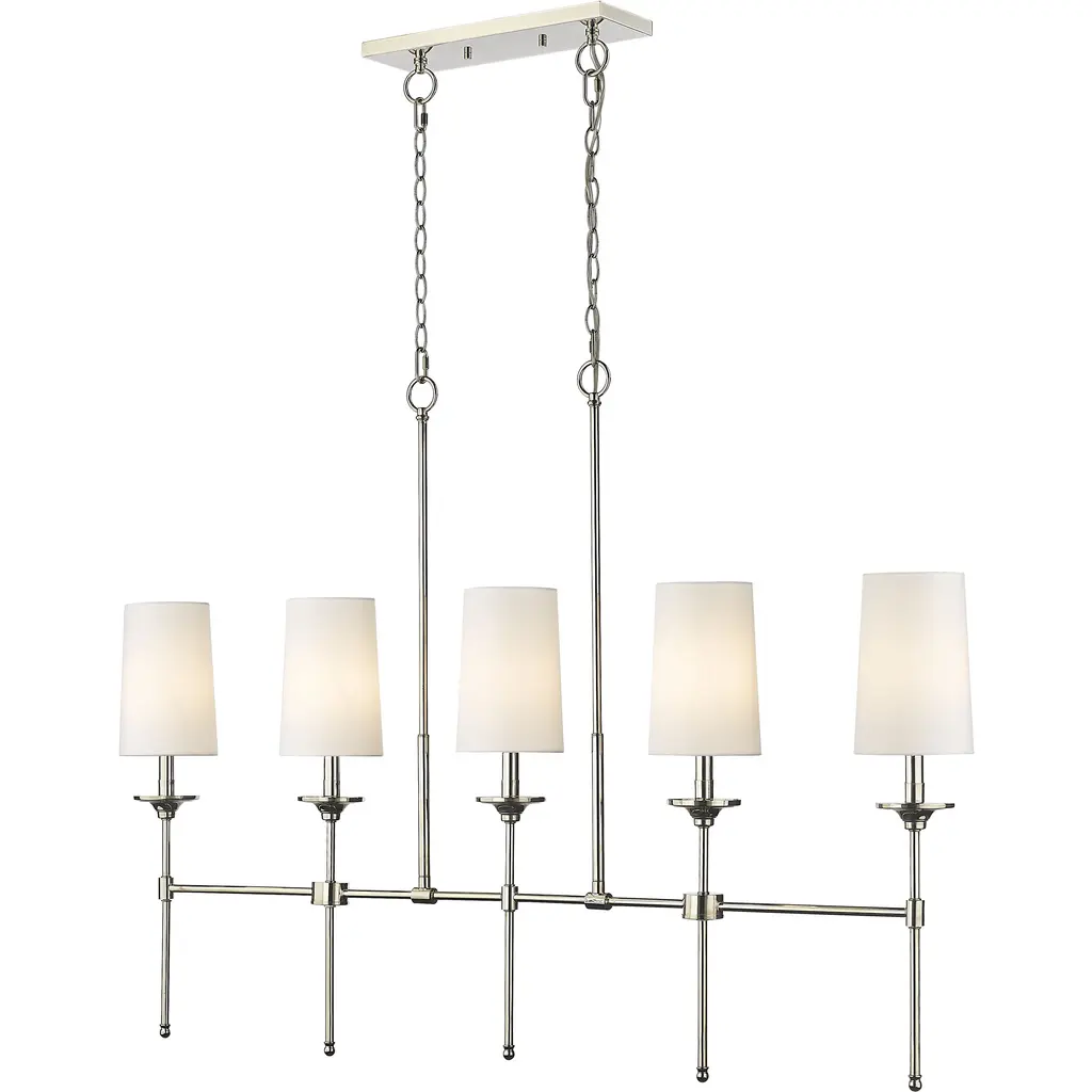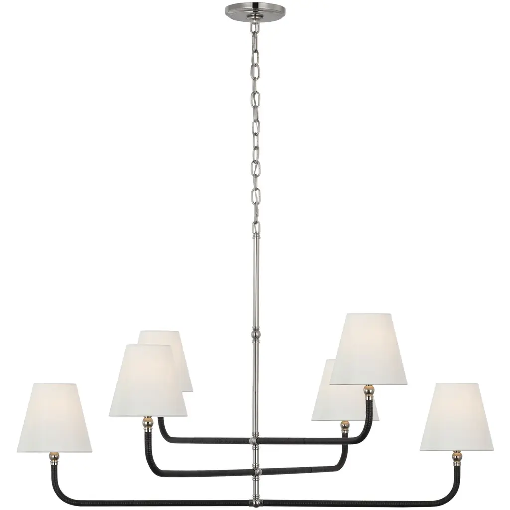 Basden Grande Three Tier Chandelier in Polished Nickel and Black Rattan with Linen Shades