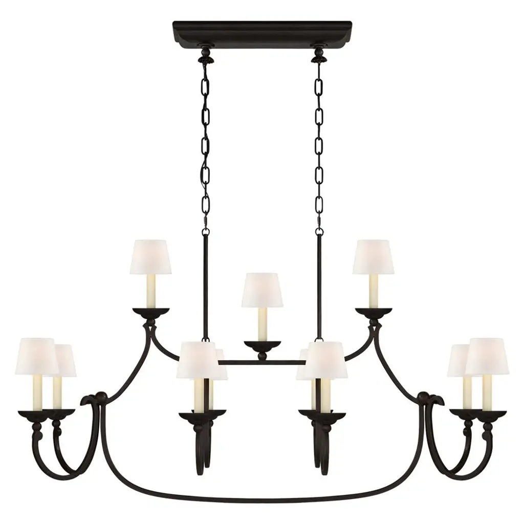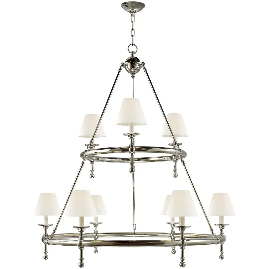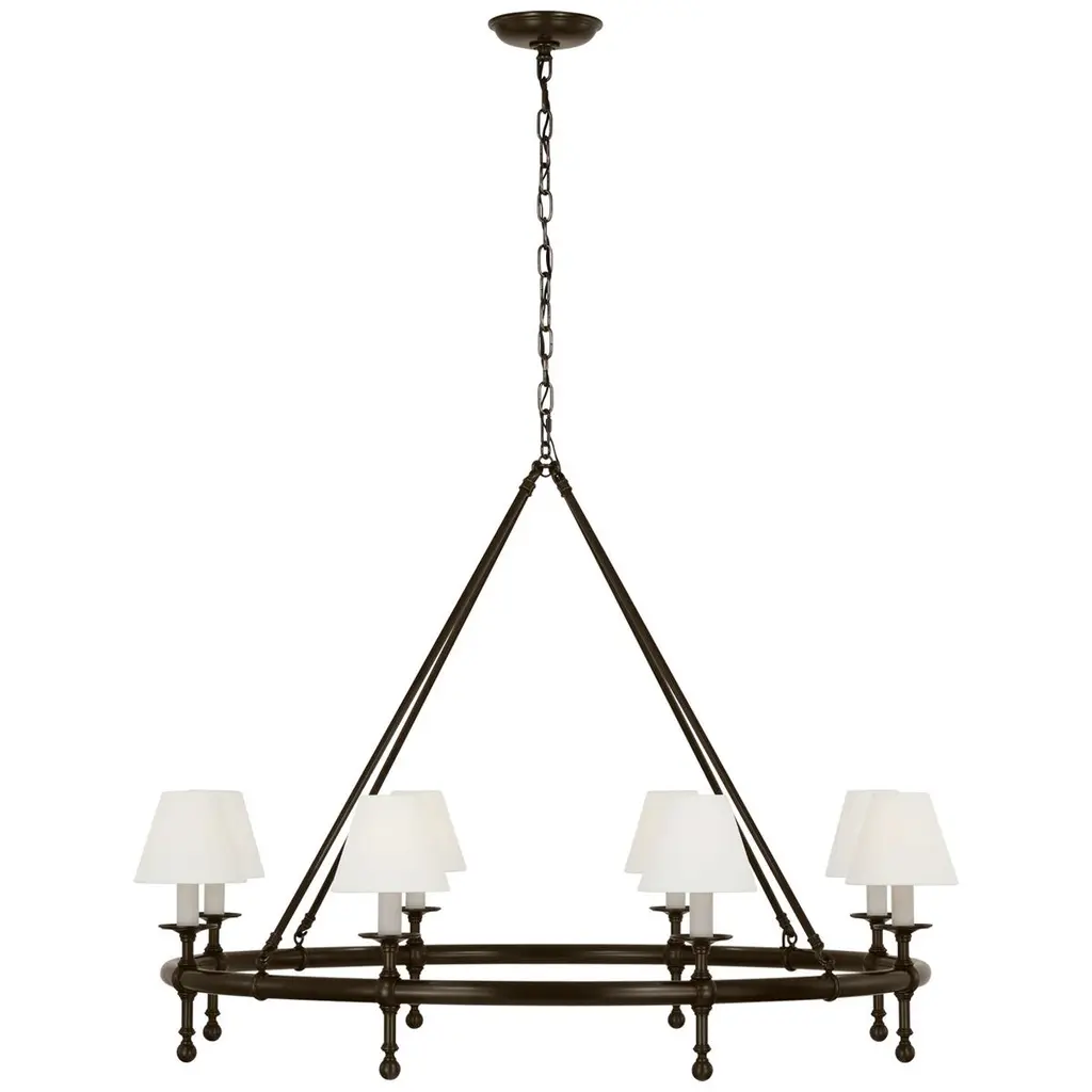 Classic Two-Tier Ring Chandelier in Bronze with Linen Shades