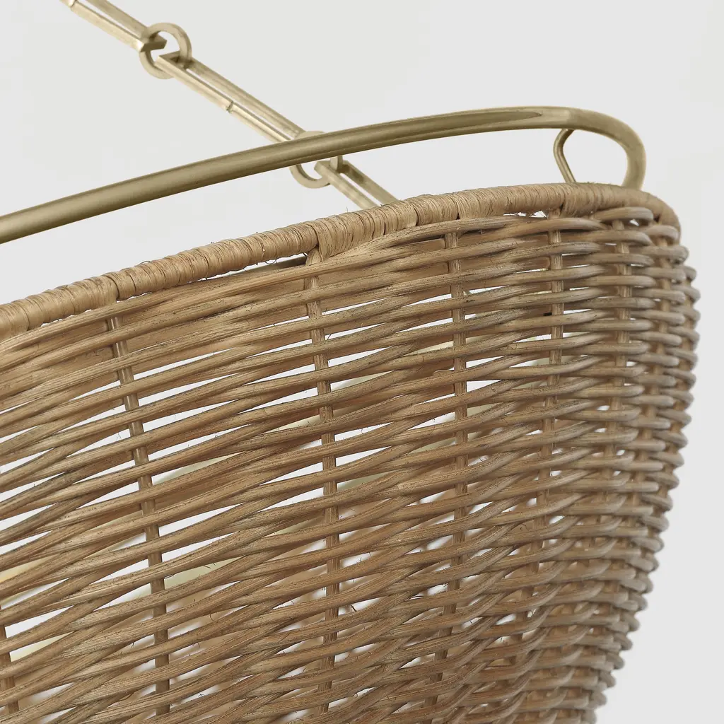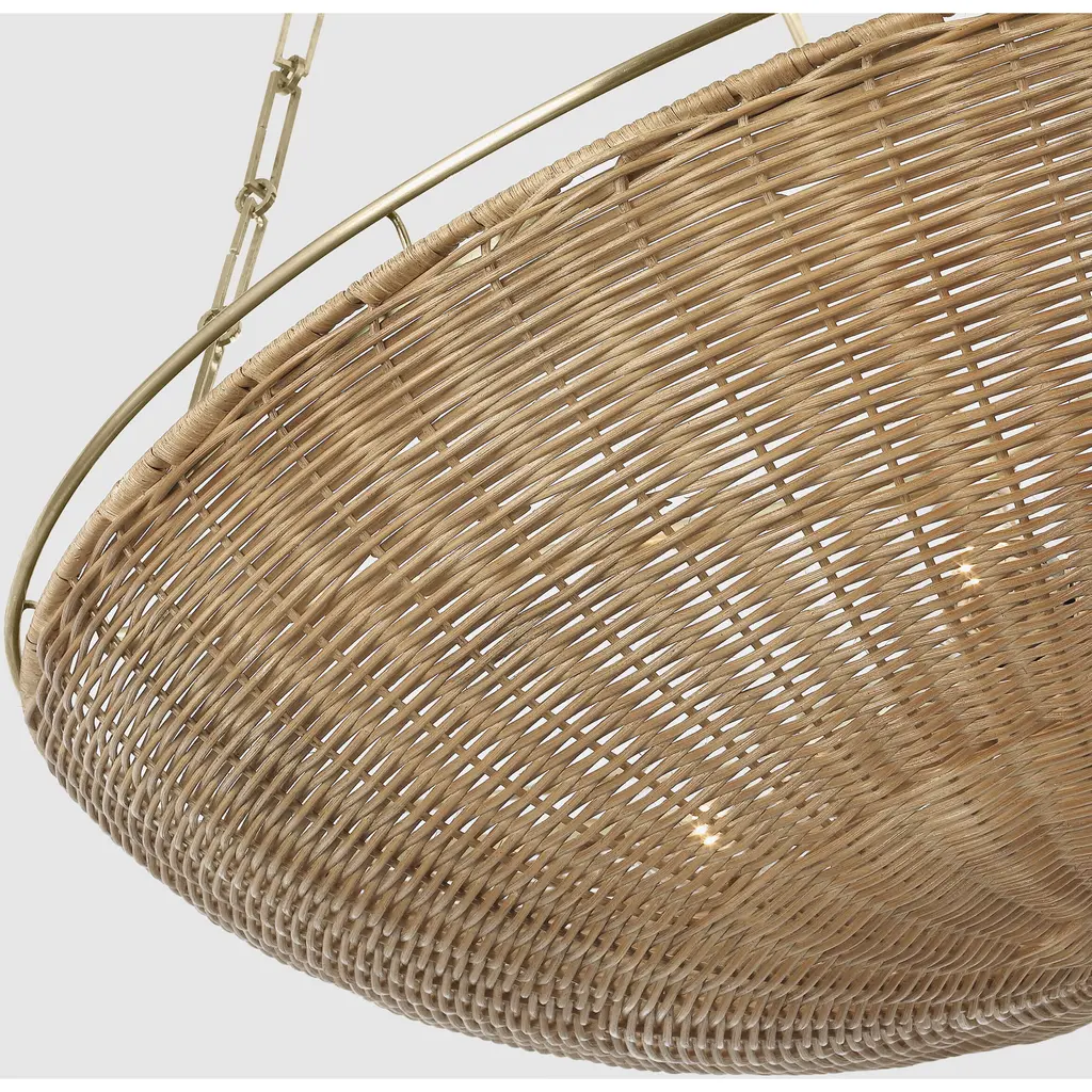 Clovis Medium Chandelier in Antique-Burnished Brass and Natural Wicker