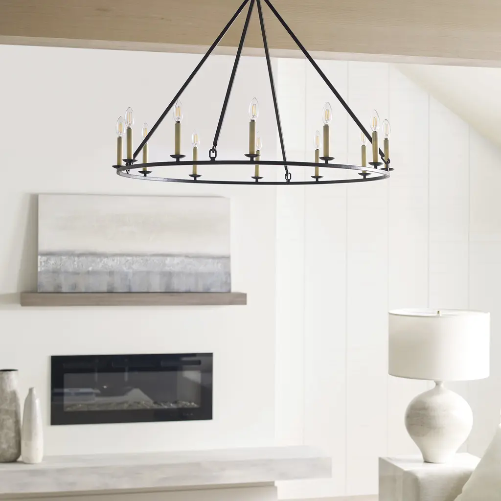 Chapman & Myers Darlana 12 Light 40 Inch Aged Iron Single Ring Chandelier Ceiling Light, Large