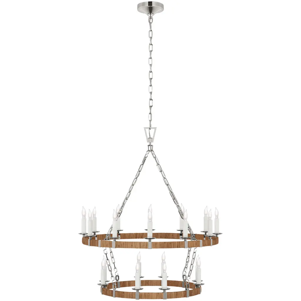 Darlana Medium Two Tier Chandelier in Antique-Burnished Brass and Natural Rattan