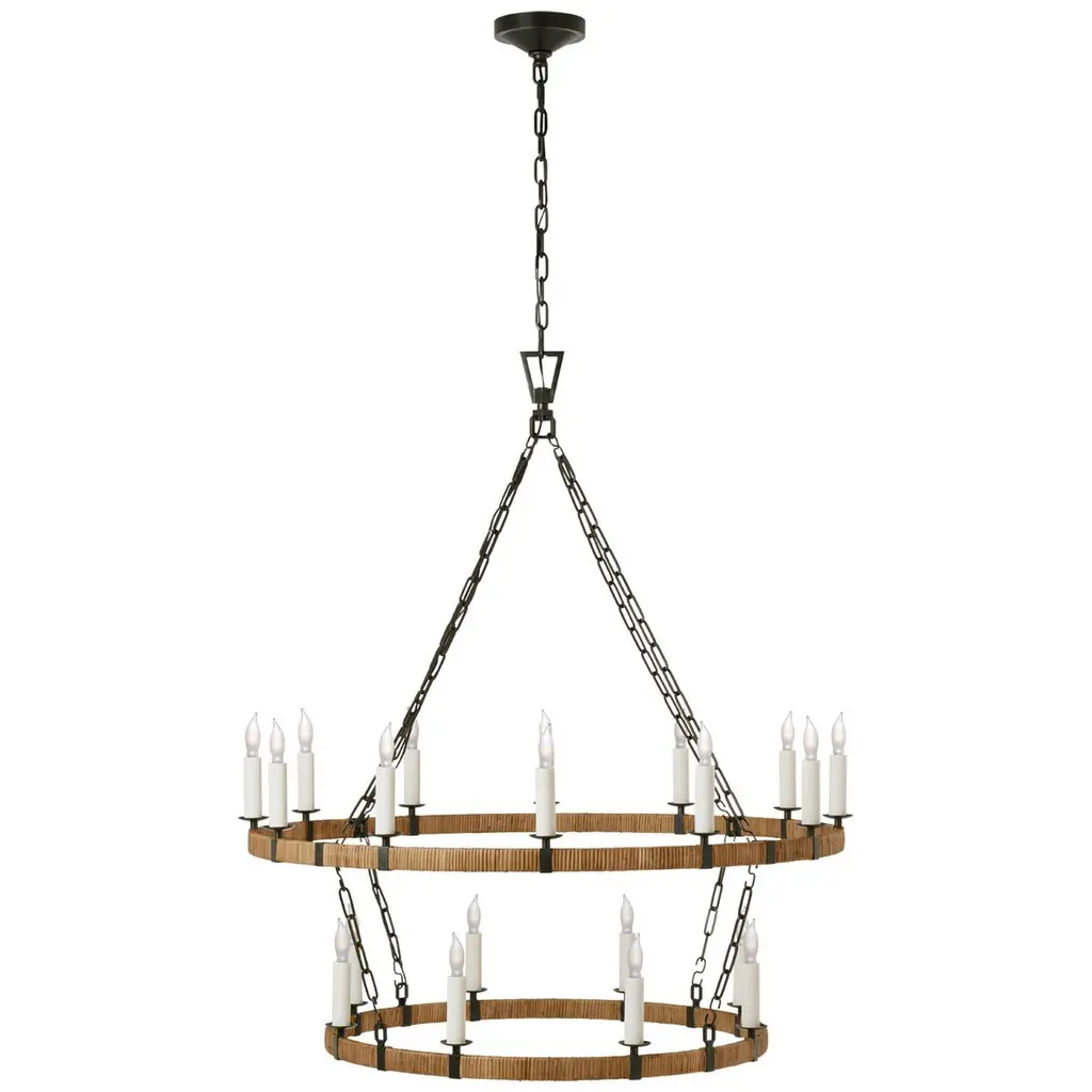 Darlana Large Wrapped Ring Chandelier in Polished Nickel and Natural Rattan