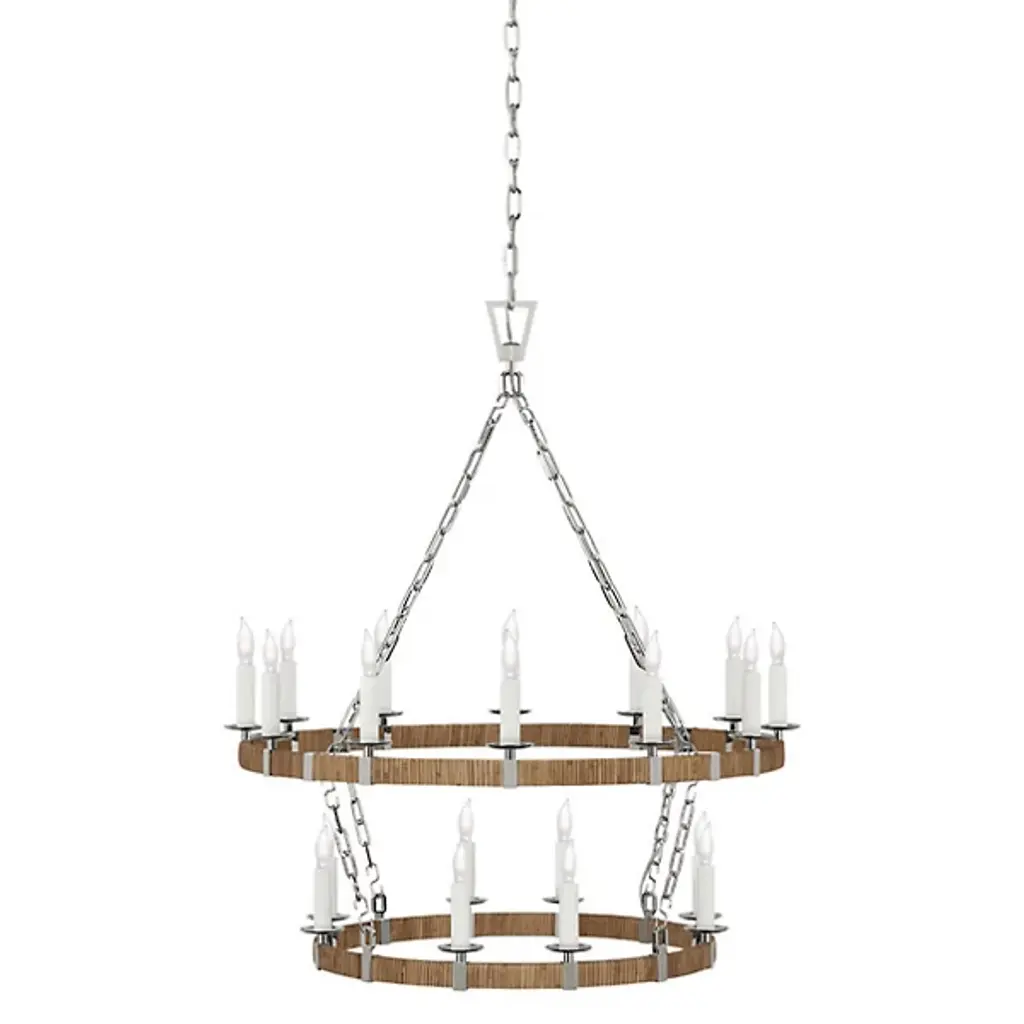 Darlana XL Wrapped Ring Chandelier in Polished Nickel and Natural Rattan