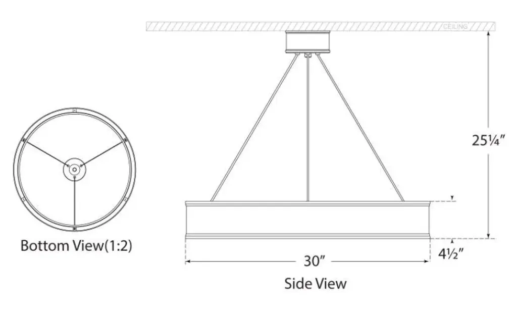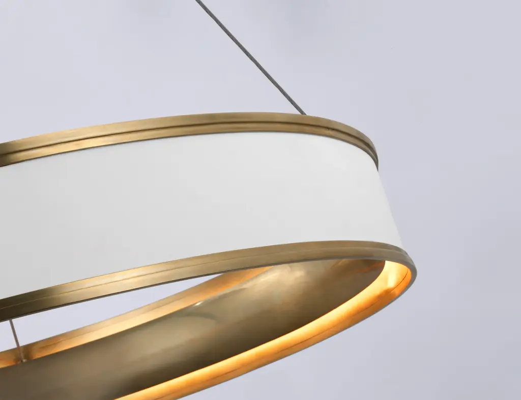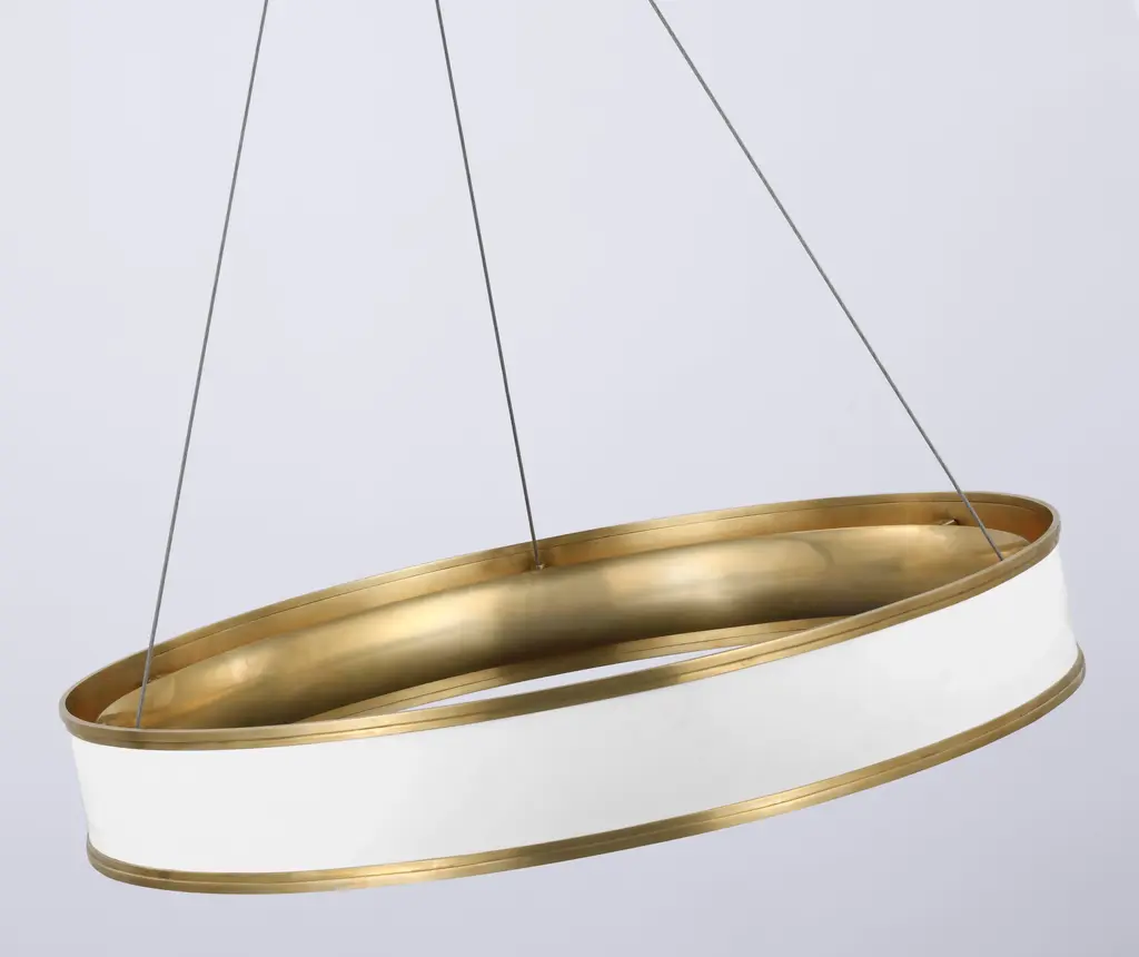 Connery 30" Ring Chandelier in Matte White and Antique-Burnished Brass Designer: Chapman & Myers Fixture Height: 4.5" Canopy: 5.5" Round Mounting: 3 Cables Shade Detail: No Option Socket: Dedicated LED Wattage: 65w (5200lm) Safety Rating Location: Damp