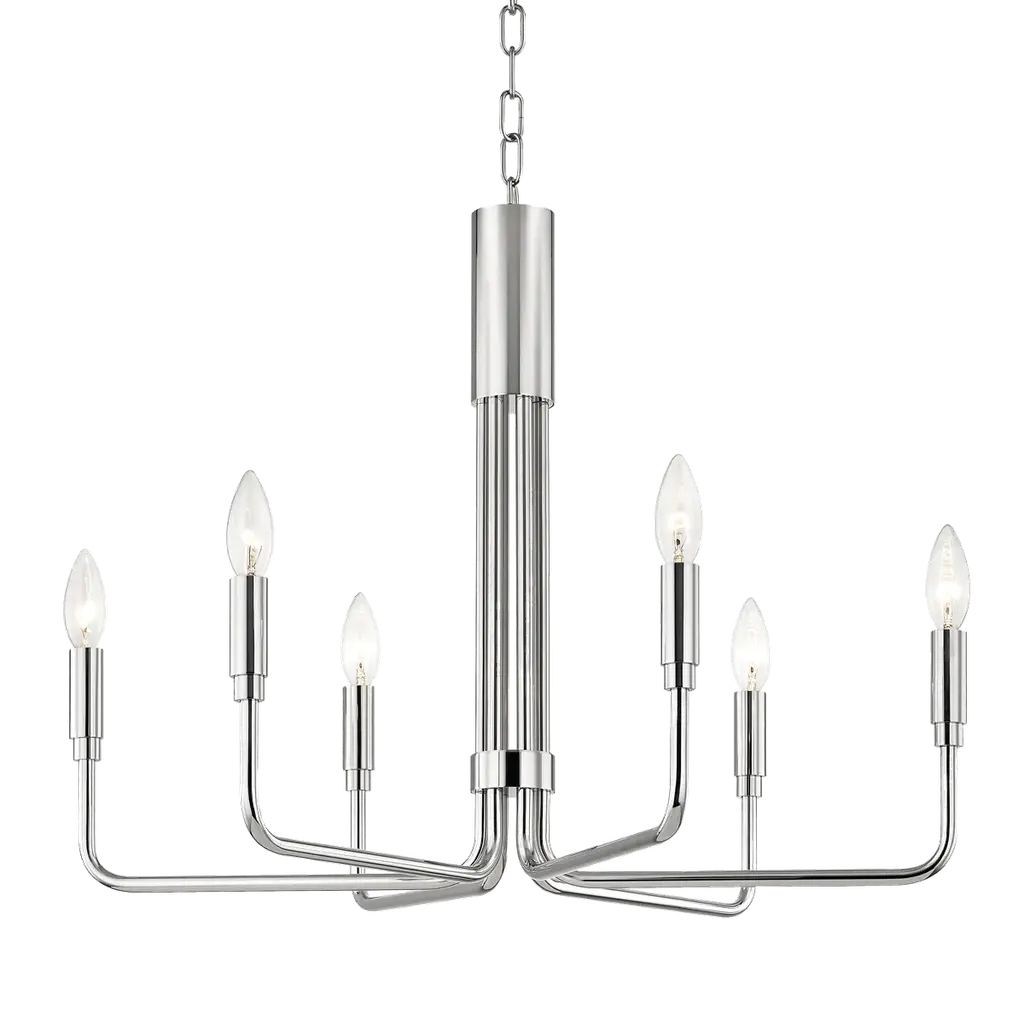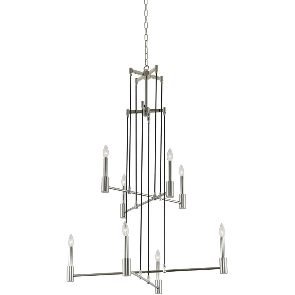 Reagan Grande Two Tier Chandelier in Polished Nickel and Crystal Designer: Chapman & Myers Canopy: 6" Round Mounting: Chain Shade Detail: No Option Socket: 12 - E12 Candelabra Wattage: 12 - 40 B11 Safety Rating Location: Dry Note: Assembly Required