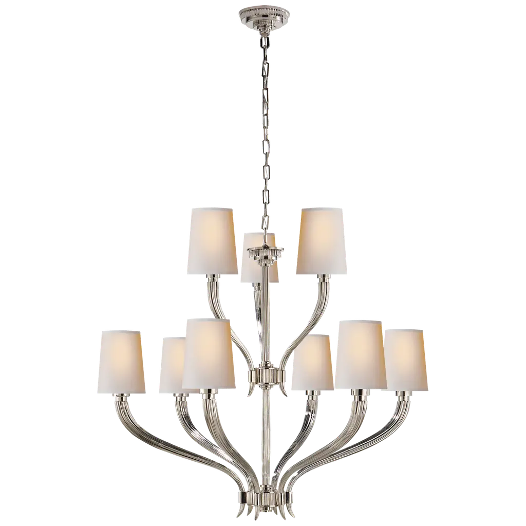 Chapman & Myers For Visual Comfort Signature Ruhlmann 2-Tier Chandelier In Polished Nickel With Natural Paper Shades
