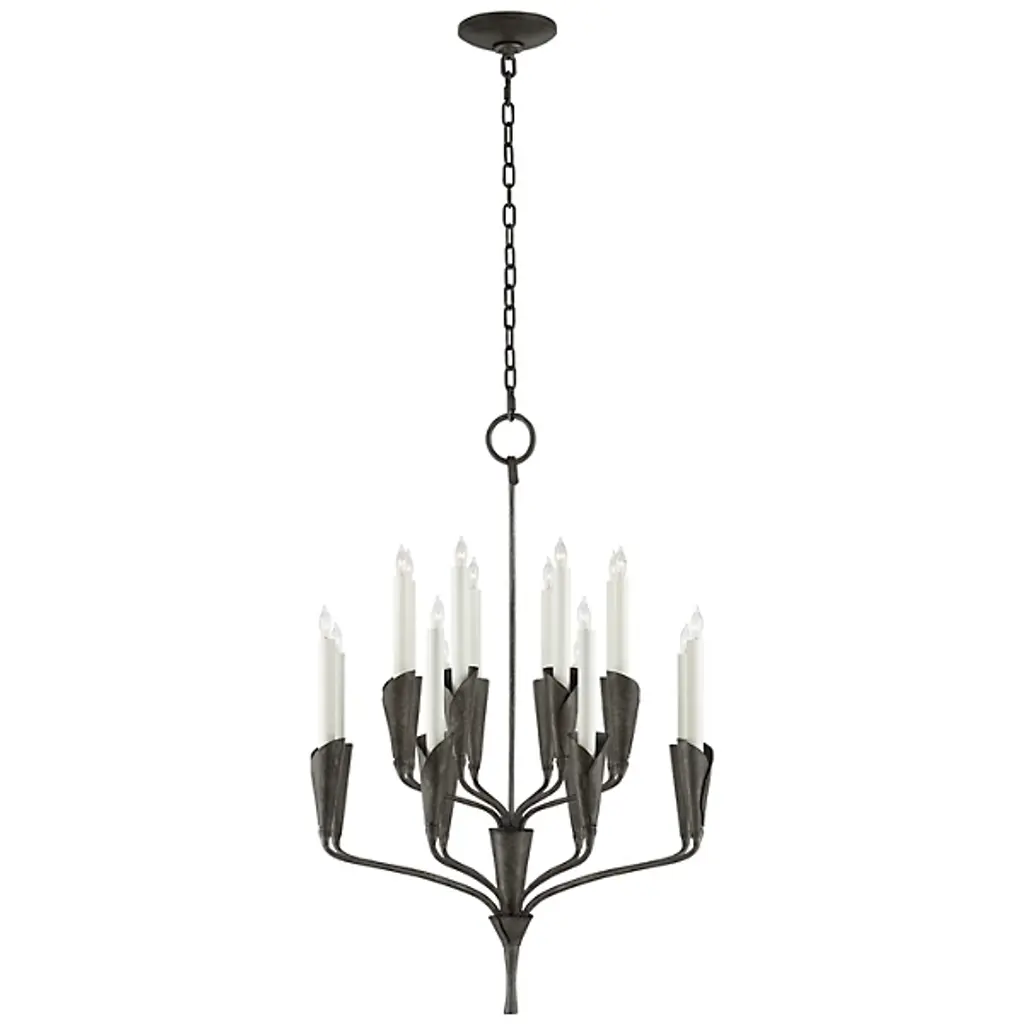 Leaf and Arrow Small Chandelier in Bronze with Antique-Burnished Brass