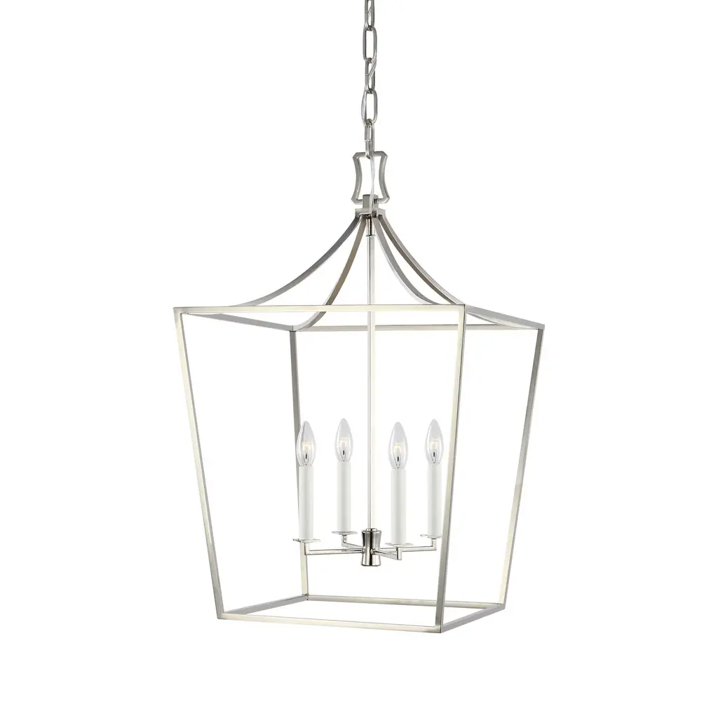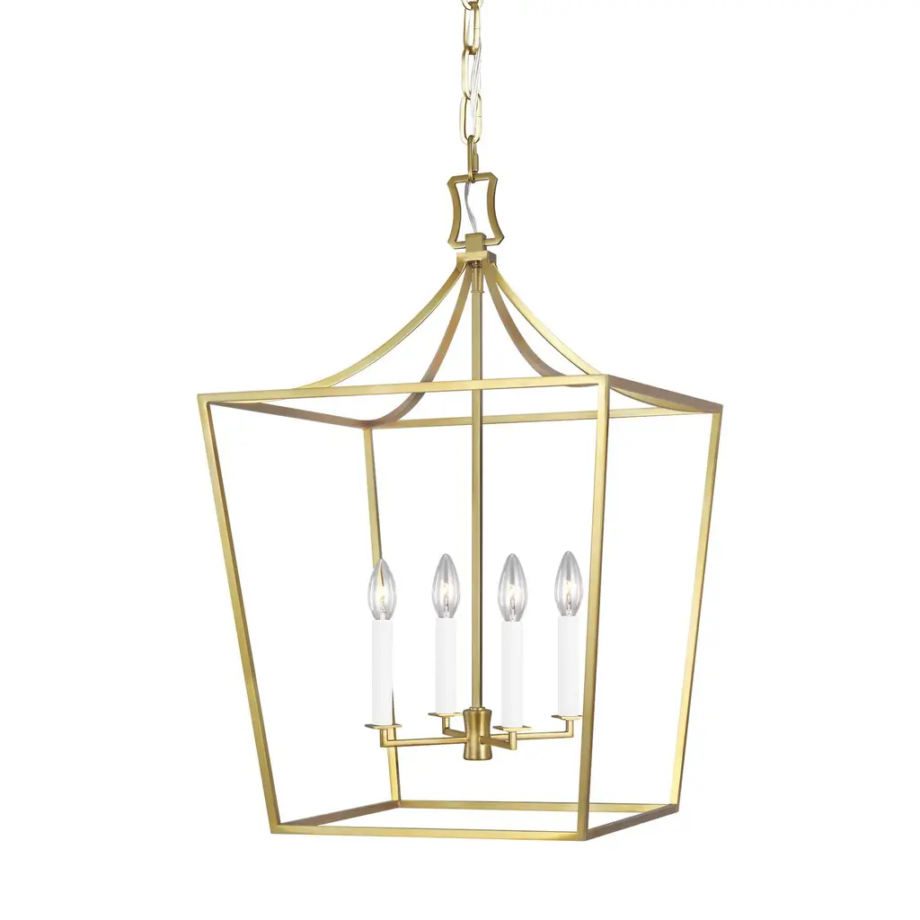 The Chapman and Myers Southold Chandelier in burnished brass or polished nickel provides abundant light to your home while adding style and interest. Southold by Chapman & Myers pairs curves and lines to form a classic geometric silhouette. This new, contemporary lantern has a thin frame that gives it an airy feel, paired with a tight hub for the candelabra. For a more traditional look, Southold is available in Burnished Brass; for a more contemporary look, try Polished Nickel. This lantern series will make any space well-lit and elegant. Crafted of steel and an open, angular frame, this elegant chandelier is ideal for illuminating any space with a warm, inviting glow. Features