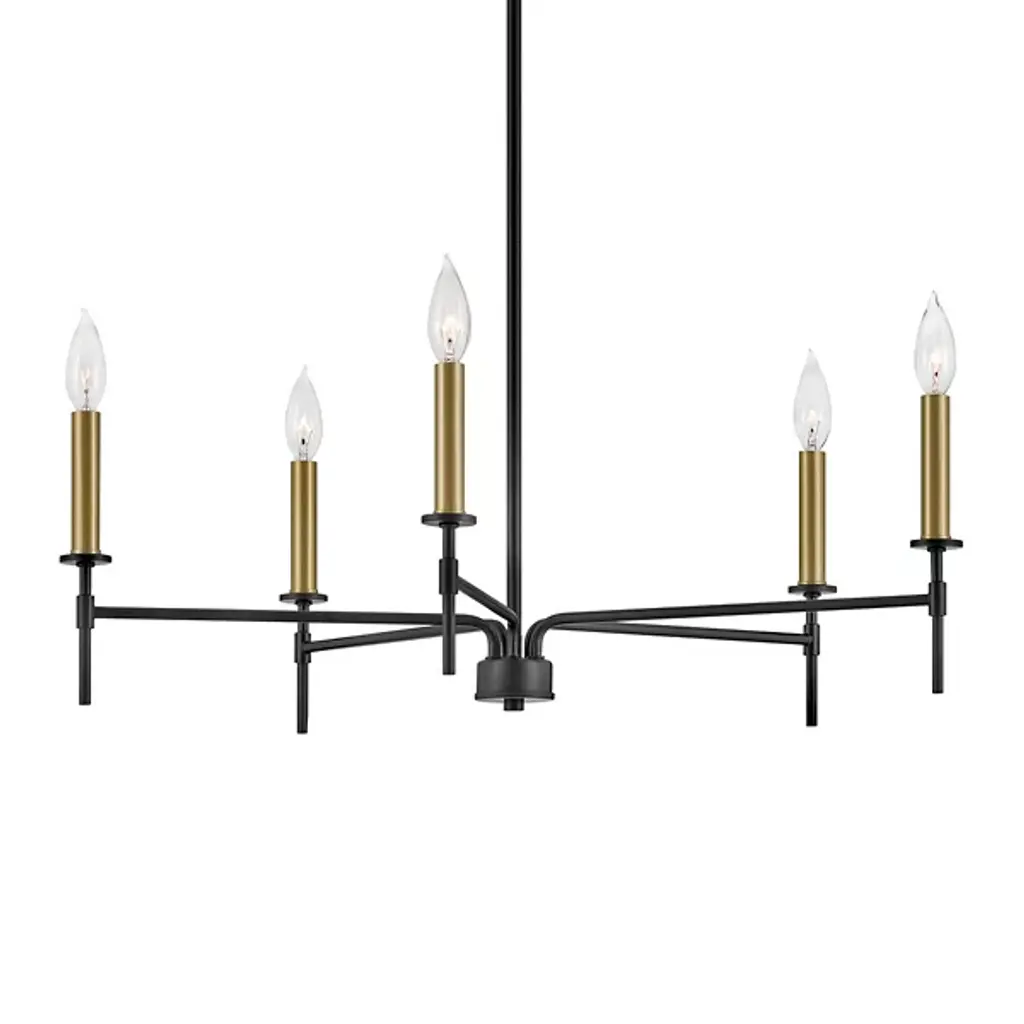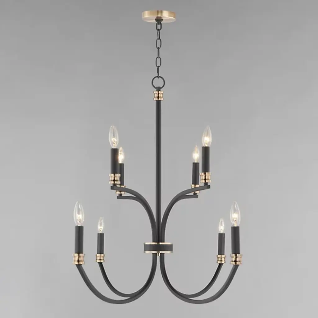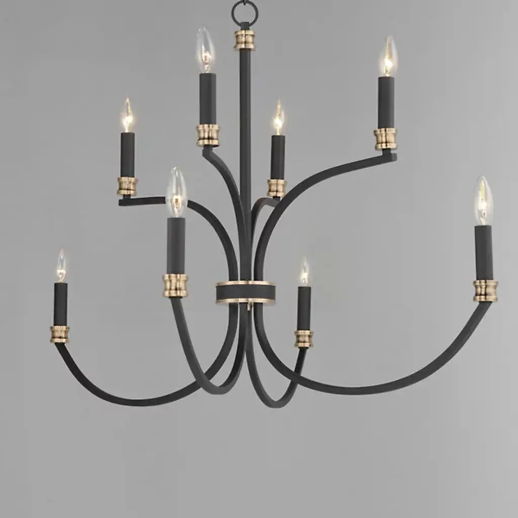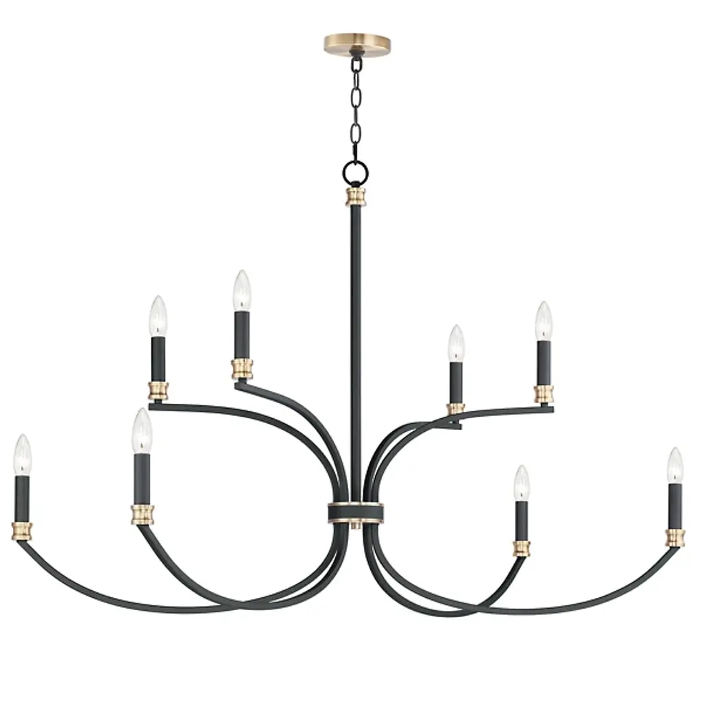 Luxuriously detailed and transitionally styled, the Charlton Multi-Tier Chandelier is a lovely candelabra style piece with chic finishing touches. Finished in a rich combination of black with antique brass accents, these fixtures provide an updated look to a classic exposed candelabra style. A composition of swooping arms flows from the central collector to allow the Charlton a distinctive silhouette.