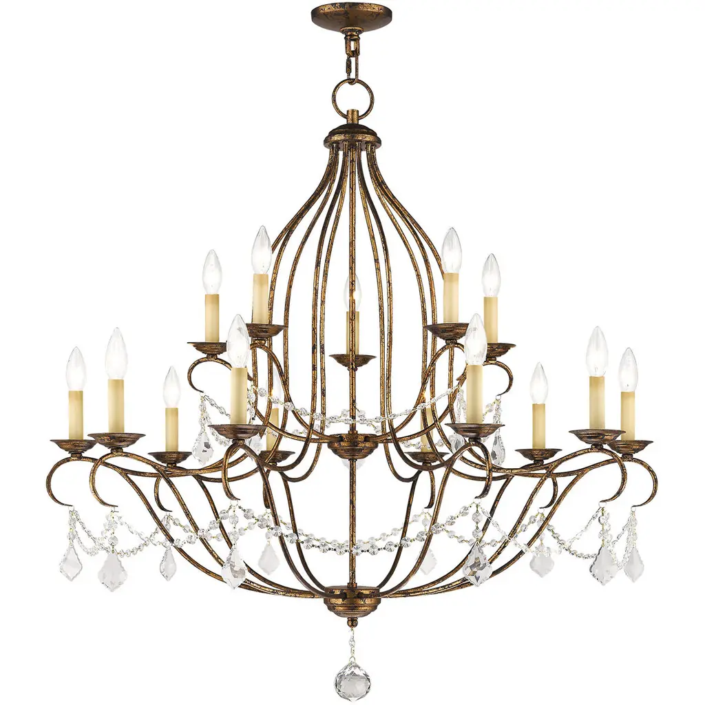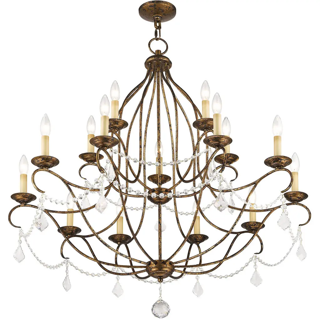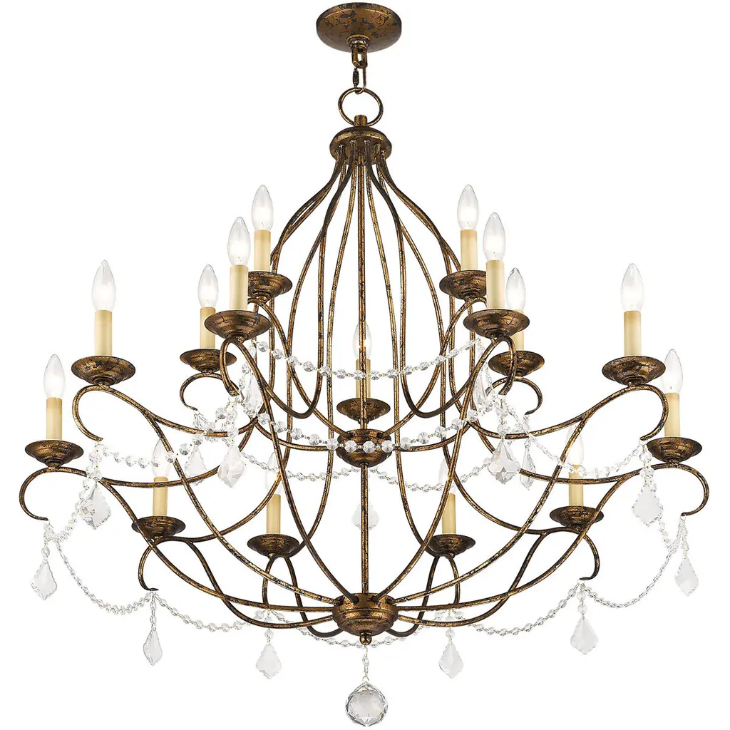 Chesterfield 15 Light 38 Inch Hand Applied Venetian Golden Bronze Chandelier Ceiling Light