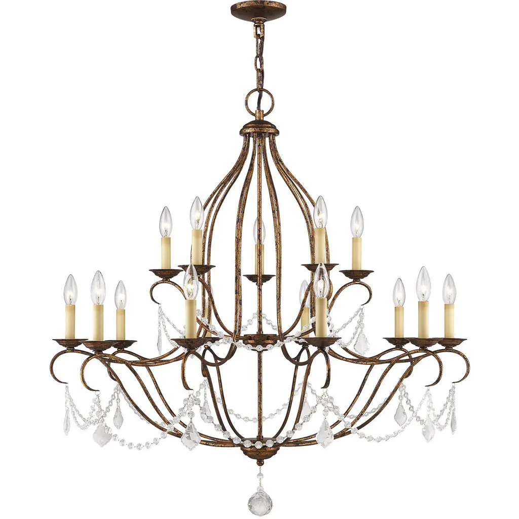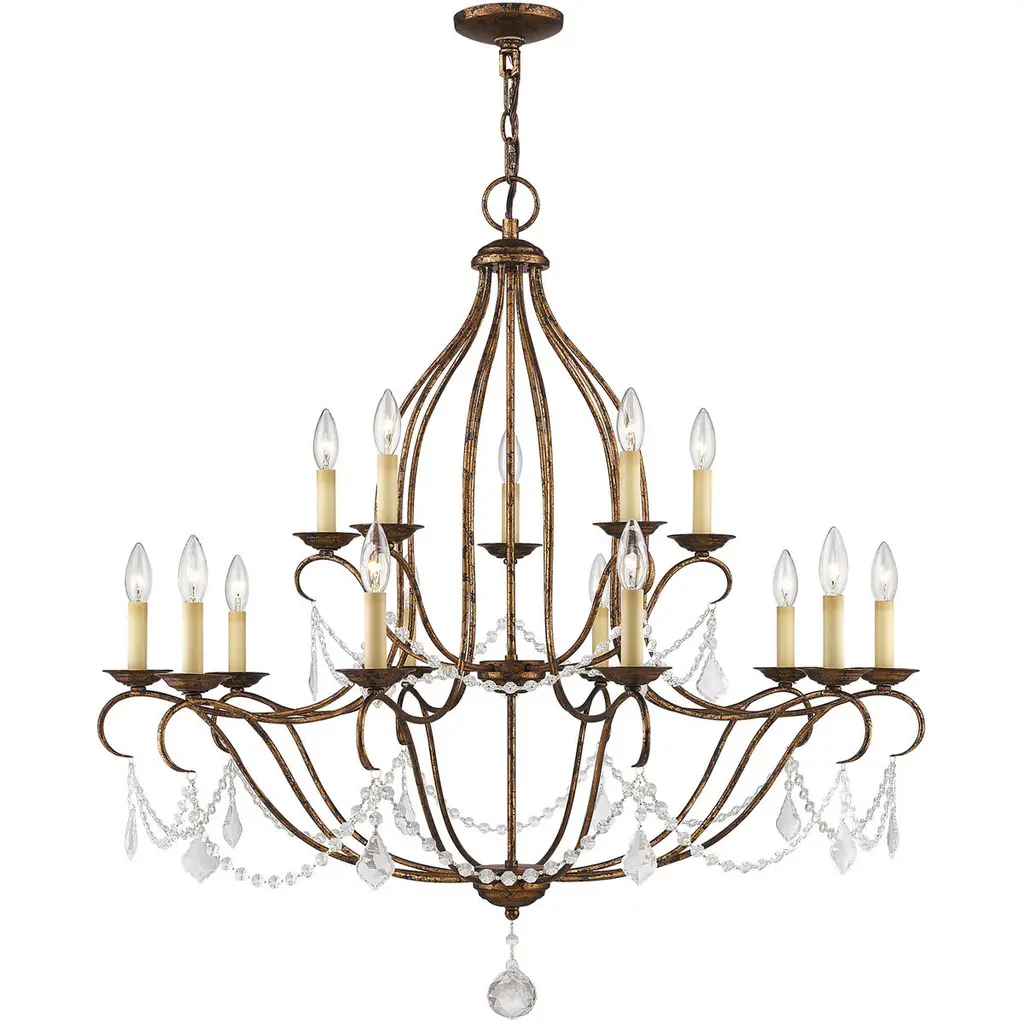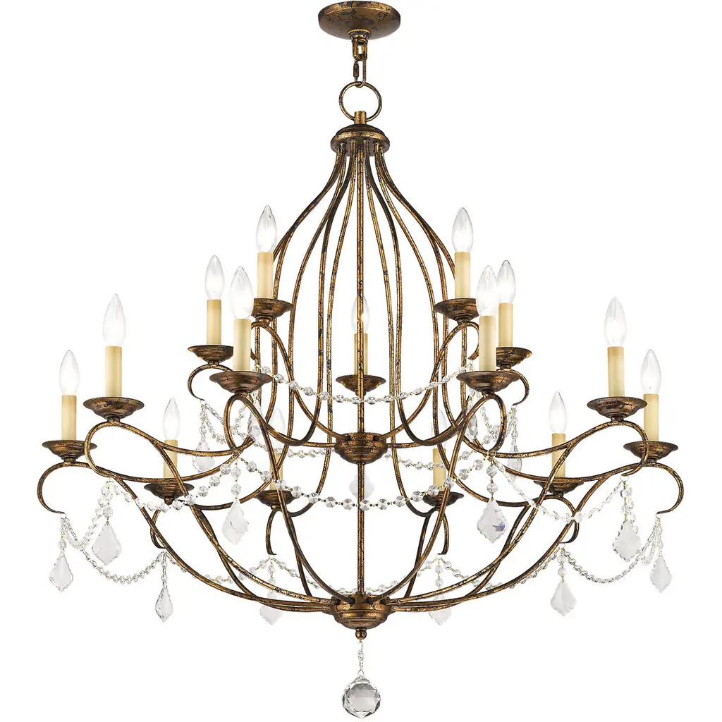 Chesterfield 15 Light 38 Inch Hand Applied Venetian Golden Bronze Chandelier Ceiling Light