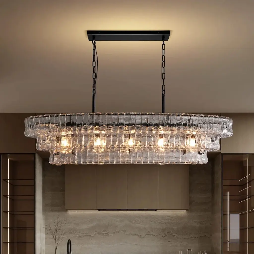 Chiara Clear Glass Tiered Rectangular Chandelier 54"