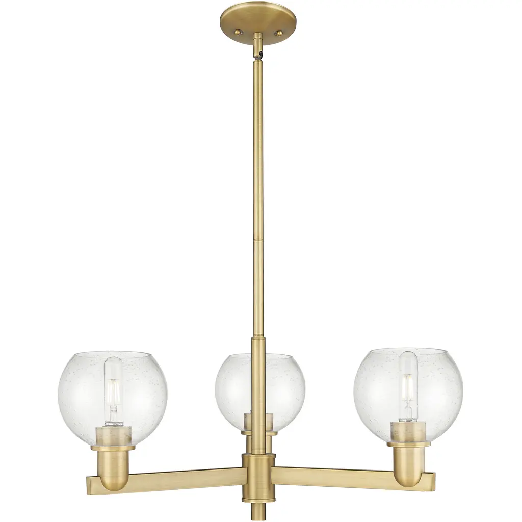 Influenced by the vintage industrial designs of early 20th-century America, the transitional lighting collection has clear glass shades, adding a layer of retro design to the warm look.