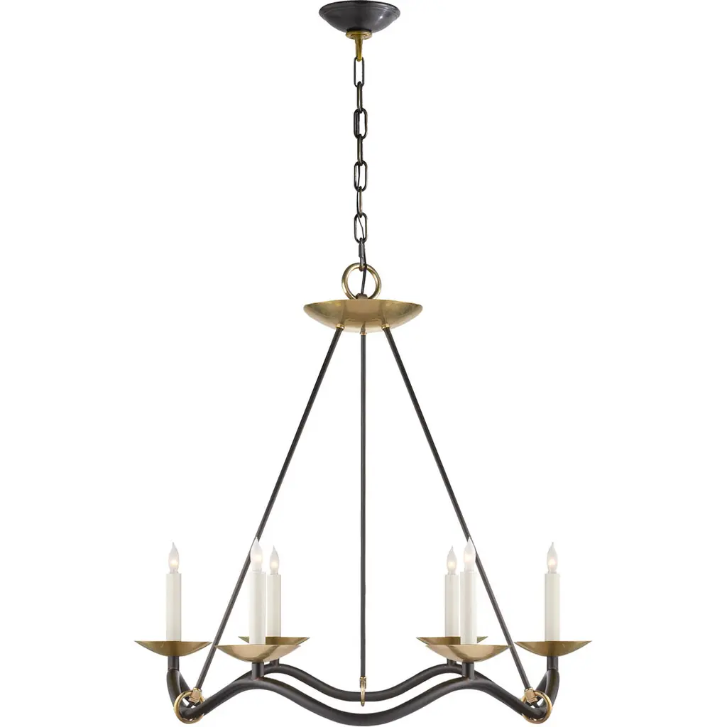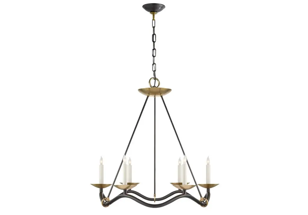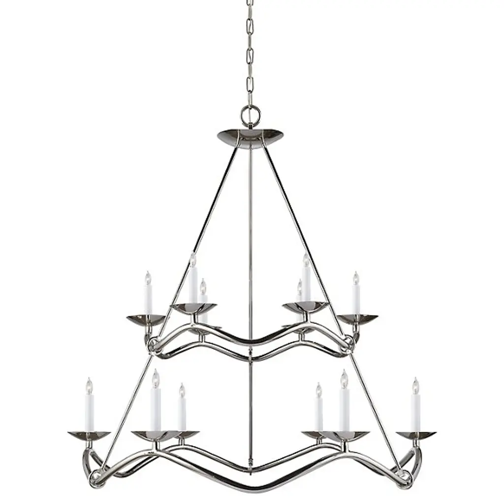 The Choros Two-Tier Chandelier by Visual Comfort Signature, formerly known as Visual Comfort, features two tiers of concentric, undulating rings that each support a series of candelabra lamps (with sleek metal bobeches). Once lit, the exposed lamping provides a full 360° of warm, ambient illumination, elevating any space into a setting that is both functional and pleasant.