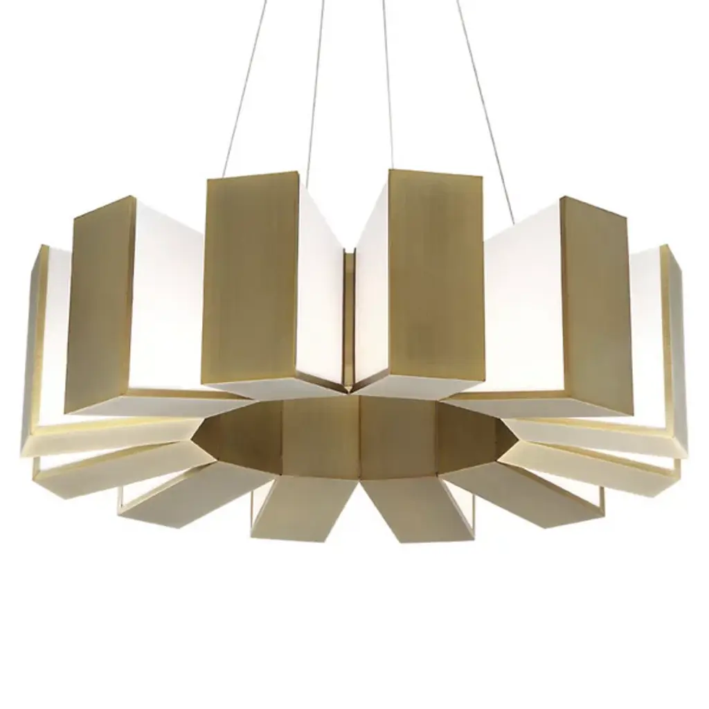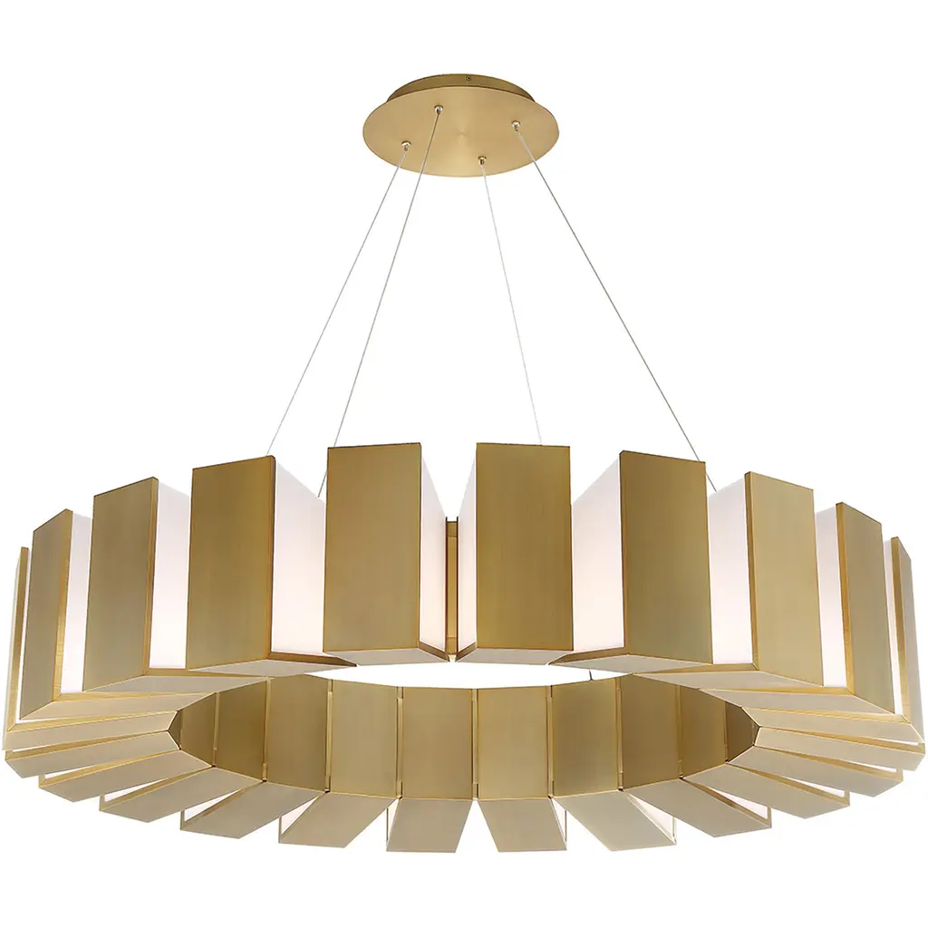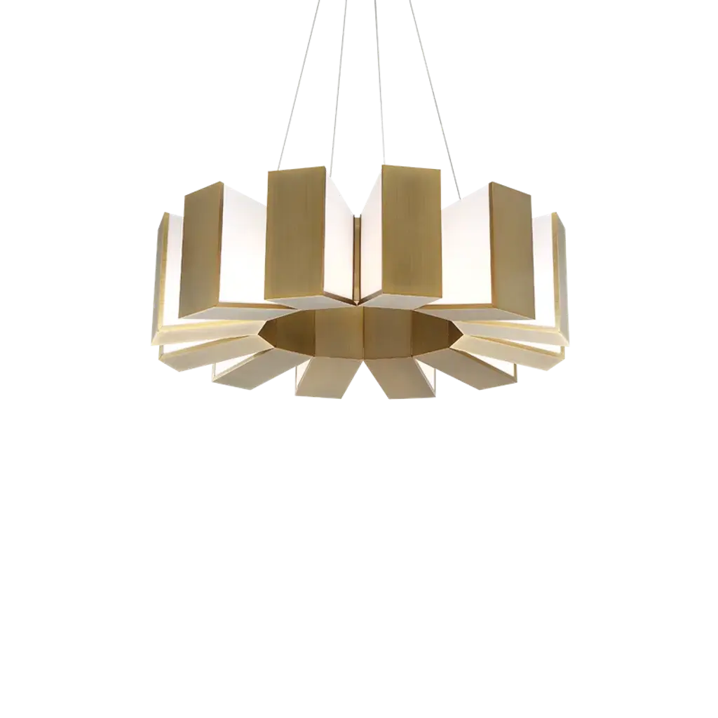 Like gears in a giant clock, this massive sculptural chandelier chimes of daring lighting design. Suspended and powered from ultra-thin aircraft cables, Chronos is ideal for highprofile architectural and commercial environments with high ceilings and larger rooms. Finished in aged brass to complement the latest modern decor. Features
